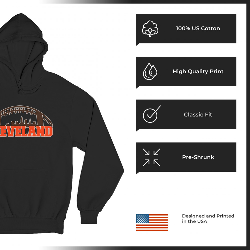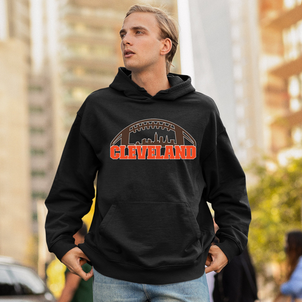Unleash your Cleveland spirit with this standout football-themed design, featuring the city's skyline in bold detail. Ideal for game day celebrations, tailgate parties, or casual wear, this design embodies the energy and pride of Cleveland's sports culture. Whether you're a lifelong fan or just love the city's vibe, this is a must-have for every Cleveland supporter.