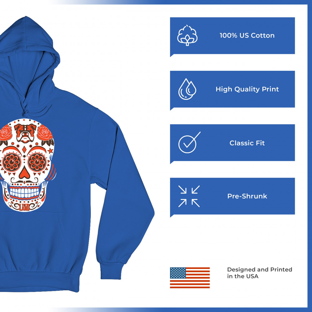 Cleveland football fans can celebrate with this bold Sugar Skull design. Featuring Lake Erie pride, Rust Belt football, and orange & brown heritage, it captures the city’s blue-collar grit and Game Day passion. A perfect calavera for fantasy leagues, playoff energy, and die-hard fan traditions.