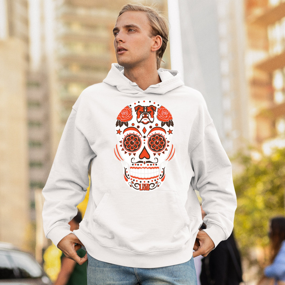 Cleveland football fans can celebrate with this bold Sugar Skull design. Featuring Lake Erie pride, Rust Belt football, and orange & brown heritage, it captures the city’s blue-collar grit and Game Day passion. A perfect calavera for fantasy leagues, playoff energy, and die-hard fan traditions.