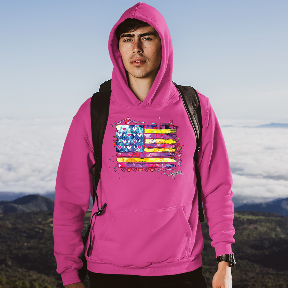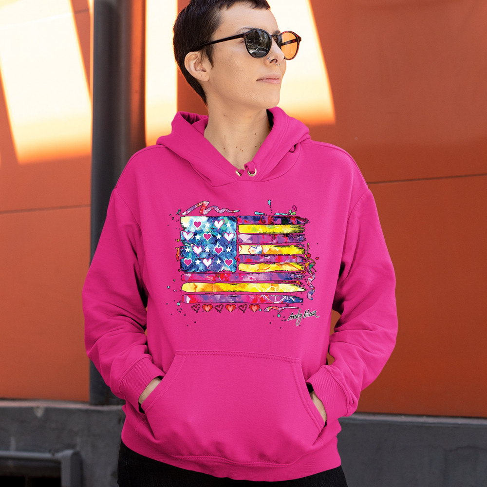COLORFUL AMERICAN FLAG sweatshirt patriotic 4th of july independence hoodie pink