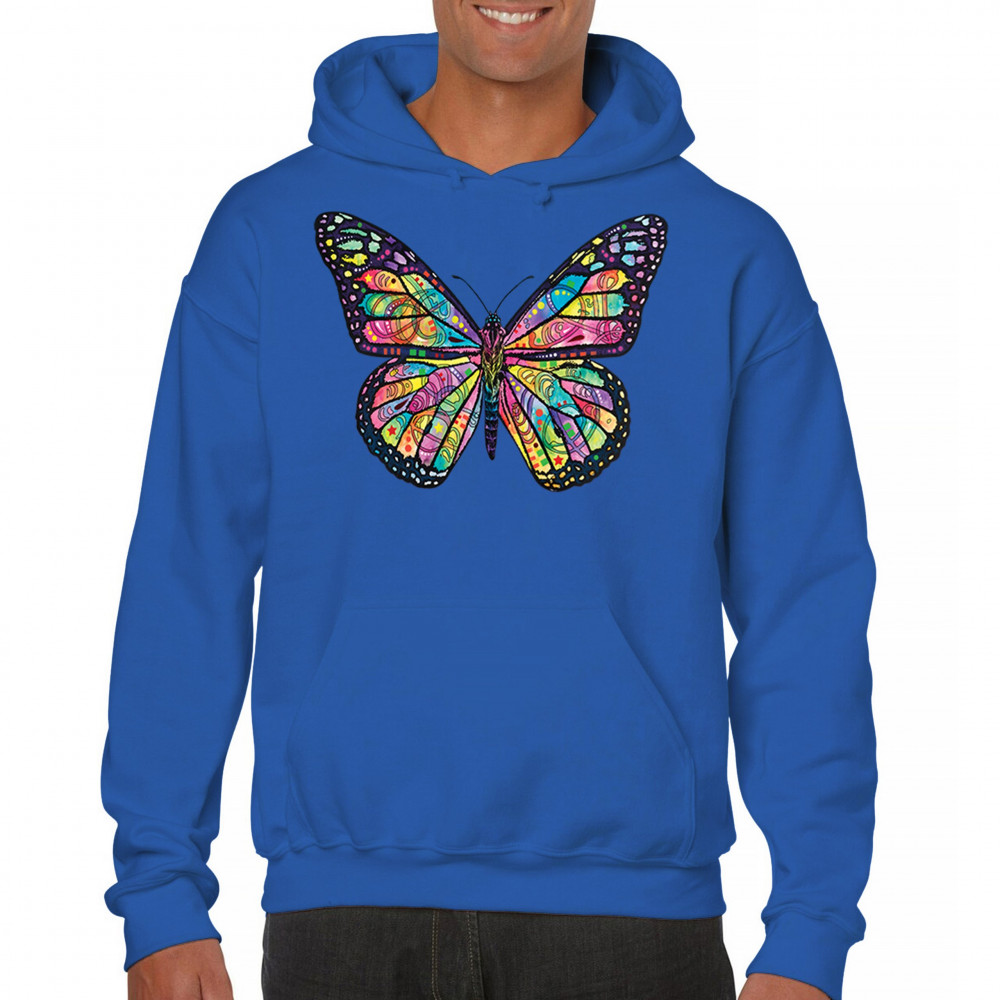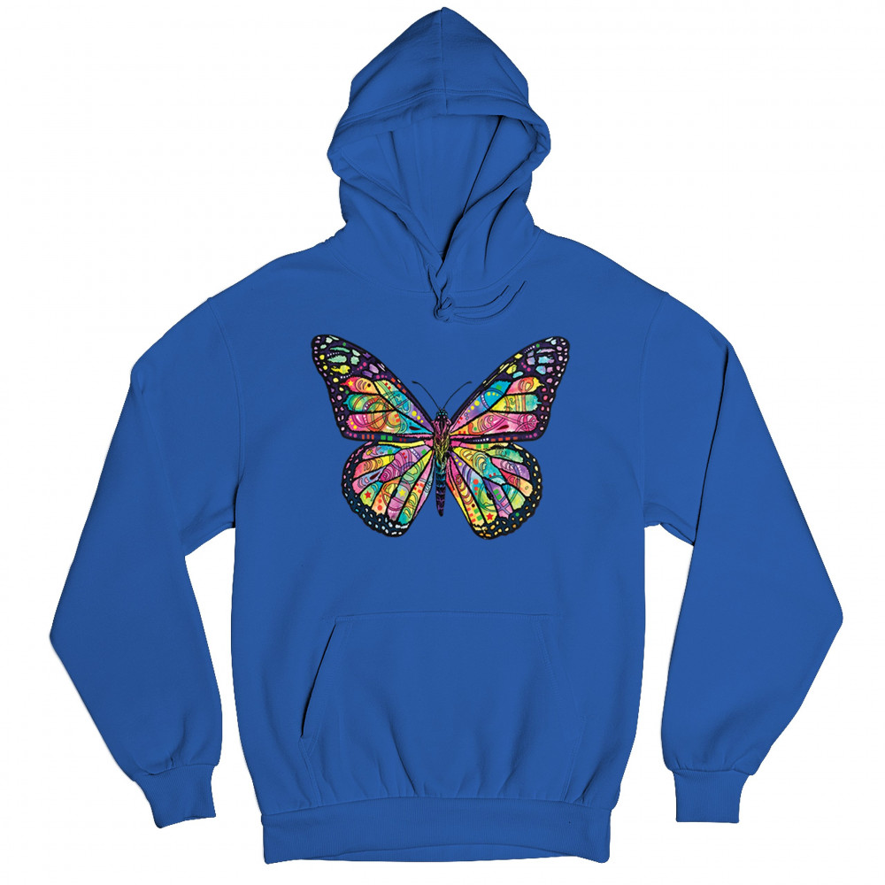 COLORFUL NEON BUTTERFLY sweatshirt dean russo beautiful nature hoodie royal blue