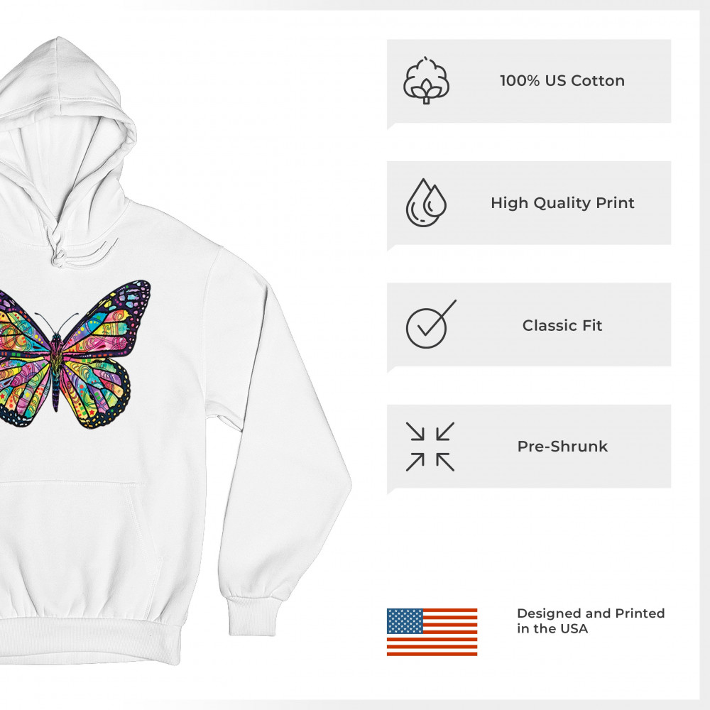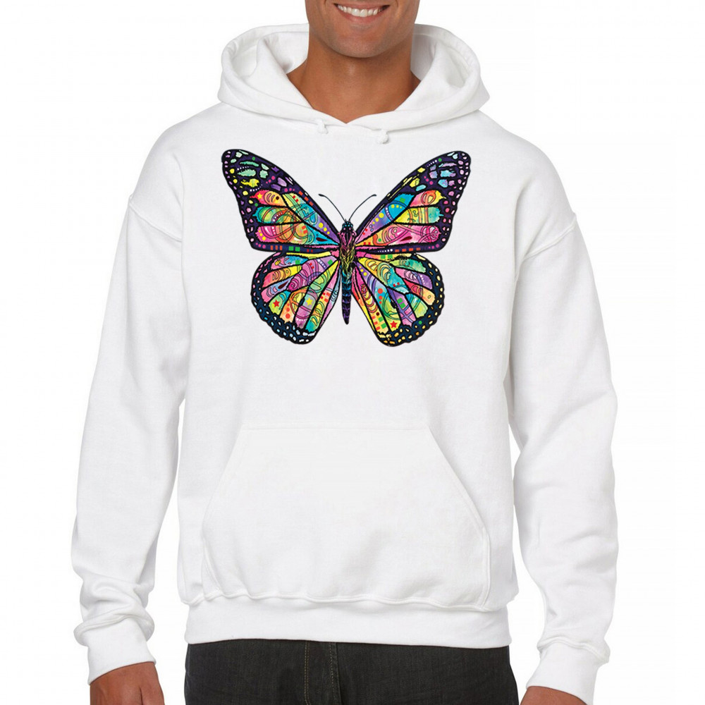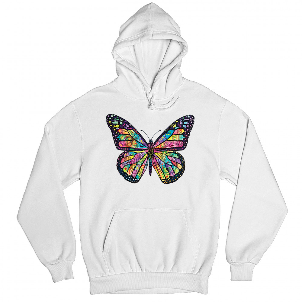 COLORFUL NEON BUTTERFLY sweatshirt dean russo beautiful nature hoodie white