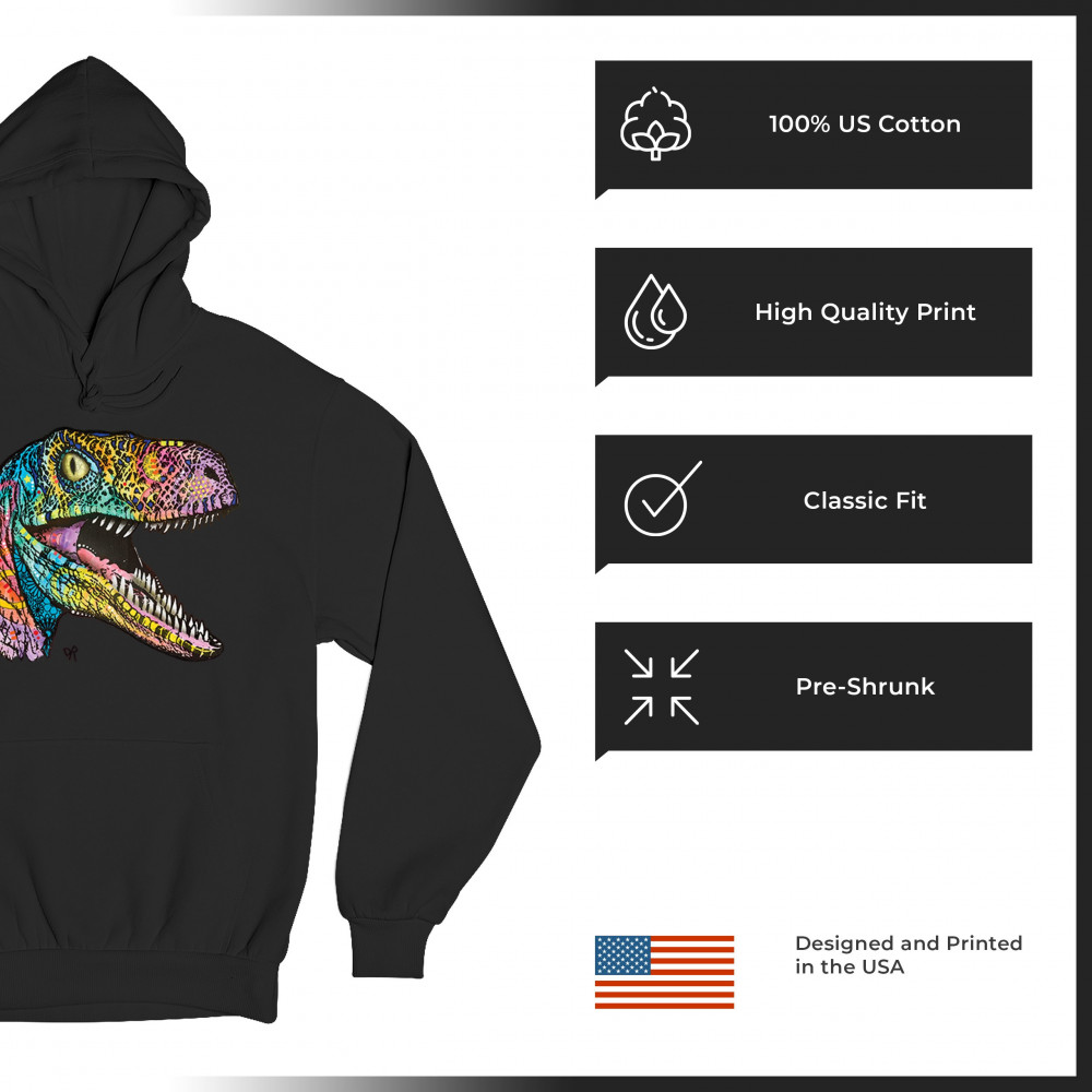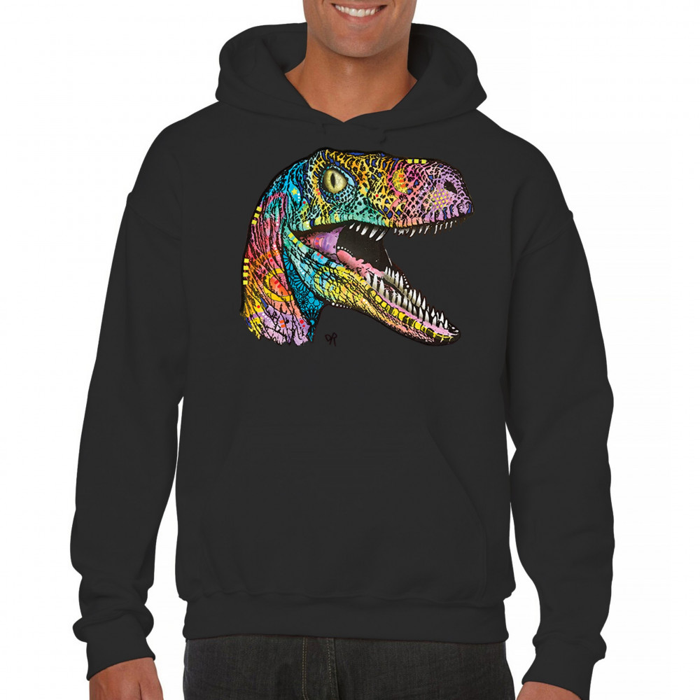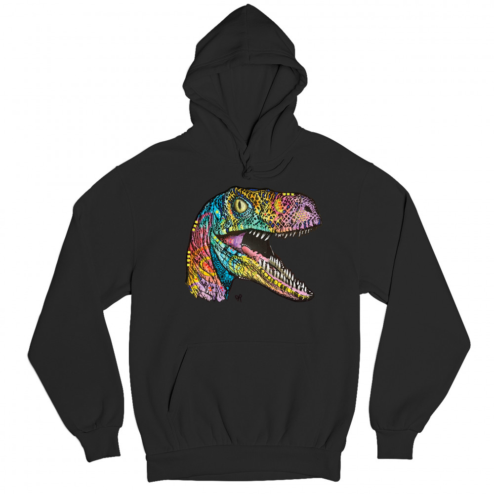 COLORFUL RAPTOR sweatshirt dean russo neon jurassic dinosaur hoodie black