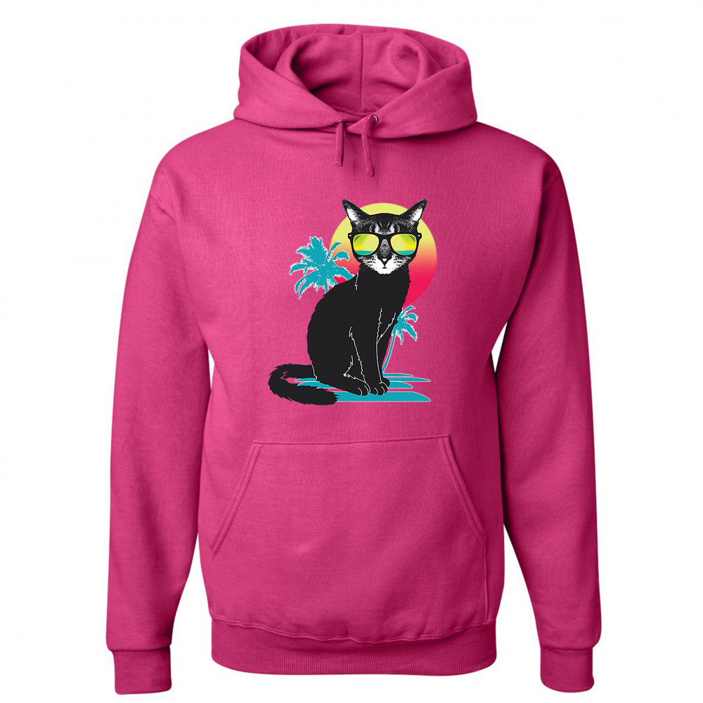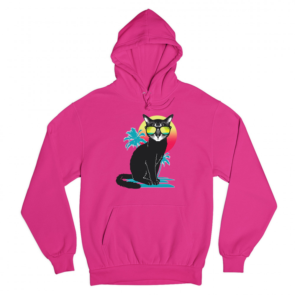 COOL SUMMER CAT sweatshirt neon kitty on a beach animal lovers hoodie pink