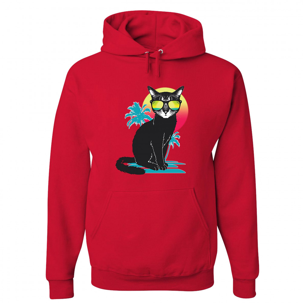 COOL SUMMER CAT sweatshirt neon kitty on a beach animal lovers hoodie red