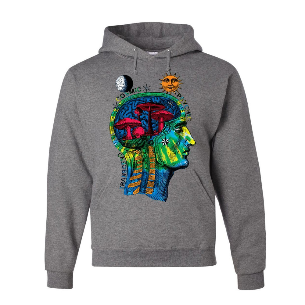 MUSHROOM HEAD cosmic psychic transcend hoodie psychedelic trippy weird space sweatshirt gray
