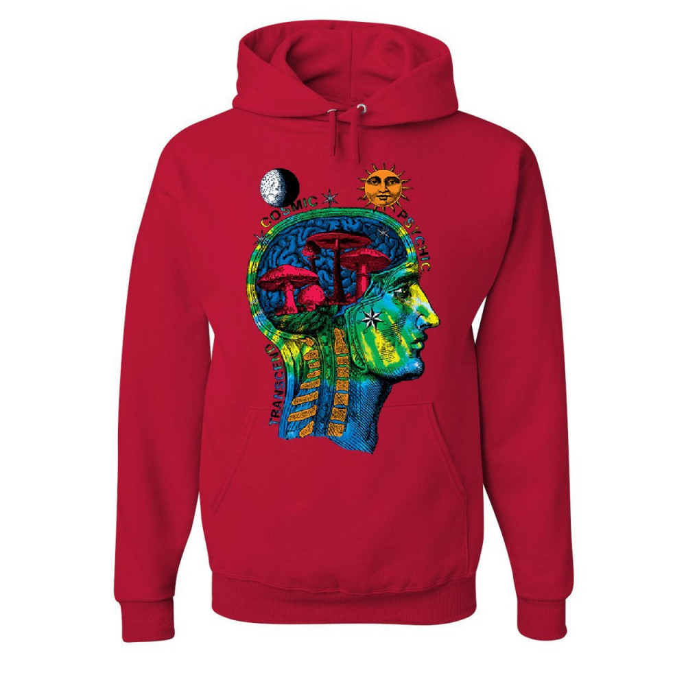 MUSHROOM HEAD cosmic psychic transcend hoodie psychedelic trippy weird space sweatshirt red