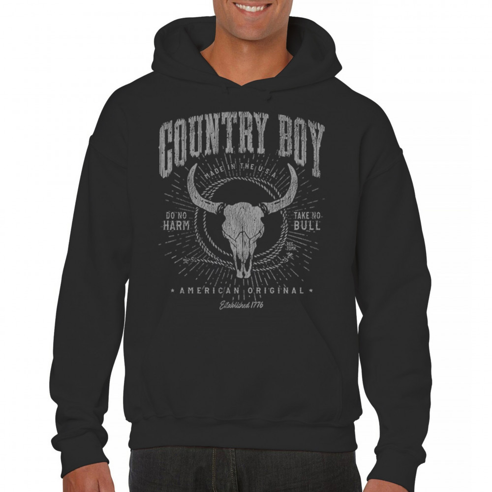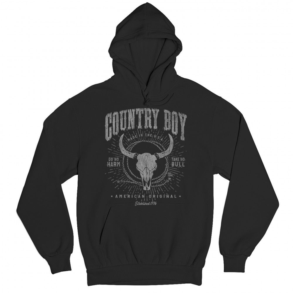 Bold country boy design with bull skull, distressed western style, patriotic grit, and the phrase “Do No Harm, Take No Bull.â€