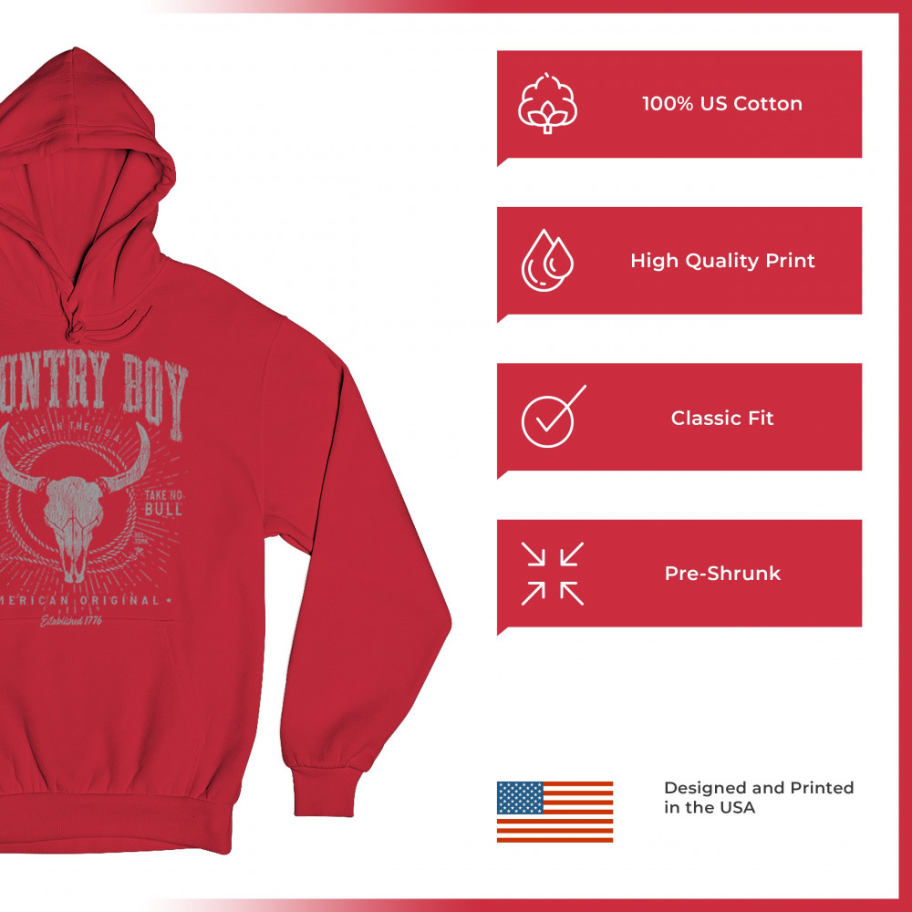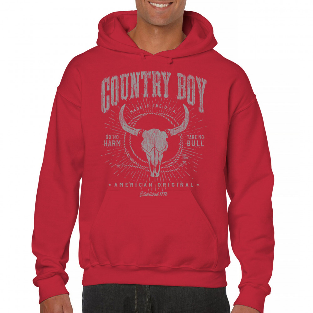 Bold country boy design with bull skull, distressed western style, patriotic grit, and the phrase “Do No Harm, Take No Bull.â€