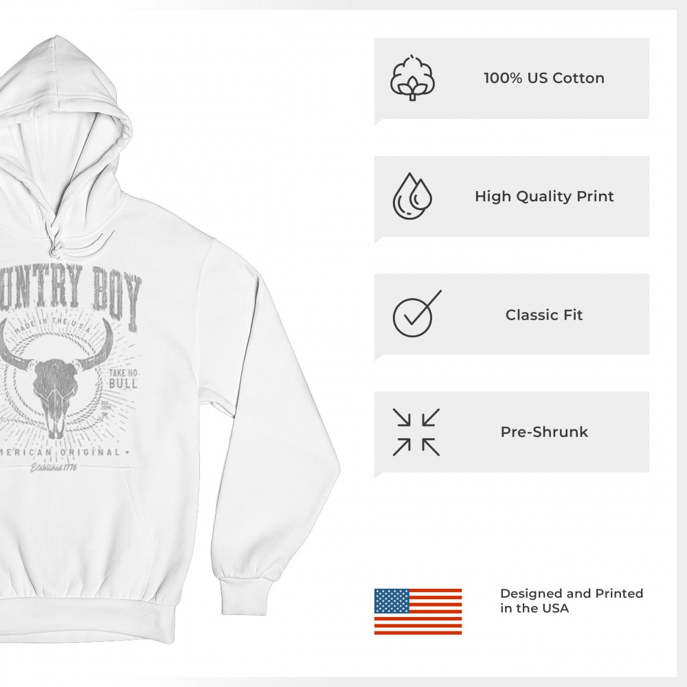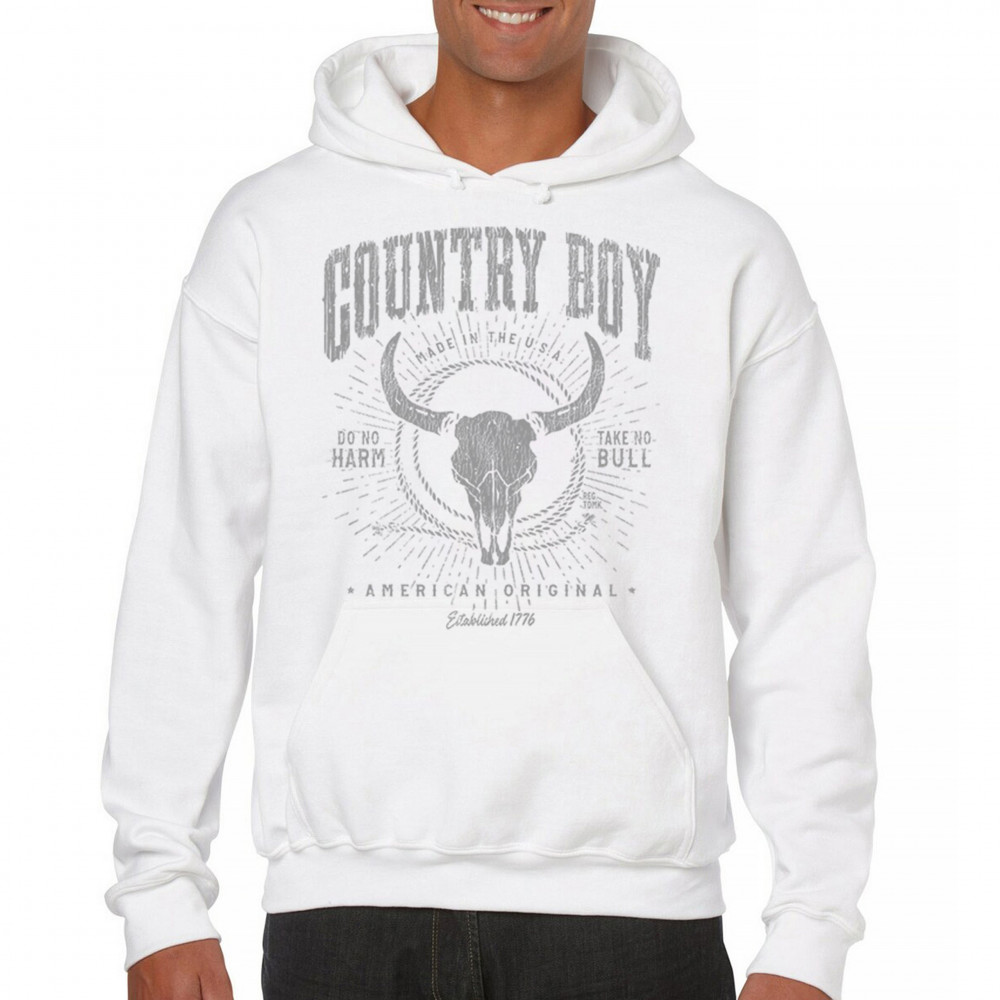 Bold country boy design with bull skull, distressed western style, patriotic grit, and the phrase “Do No Harm, Take No Bull.â€