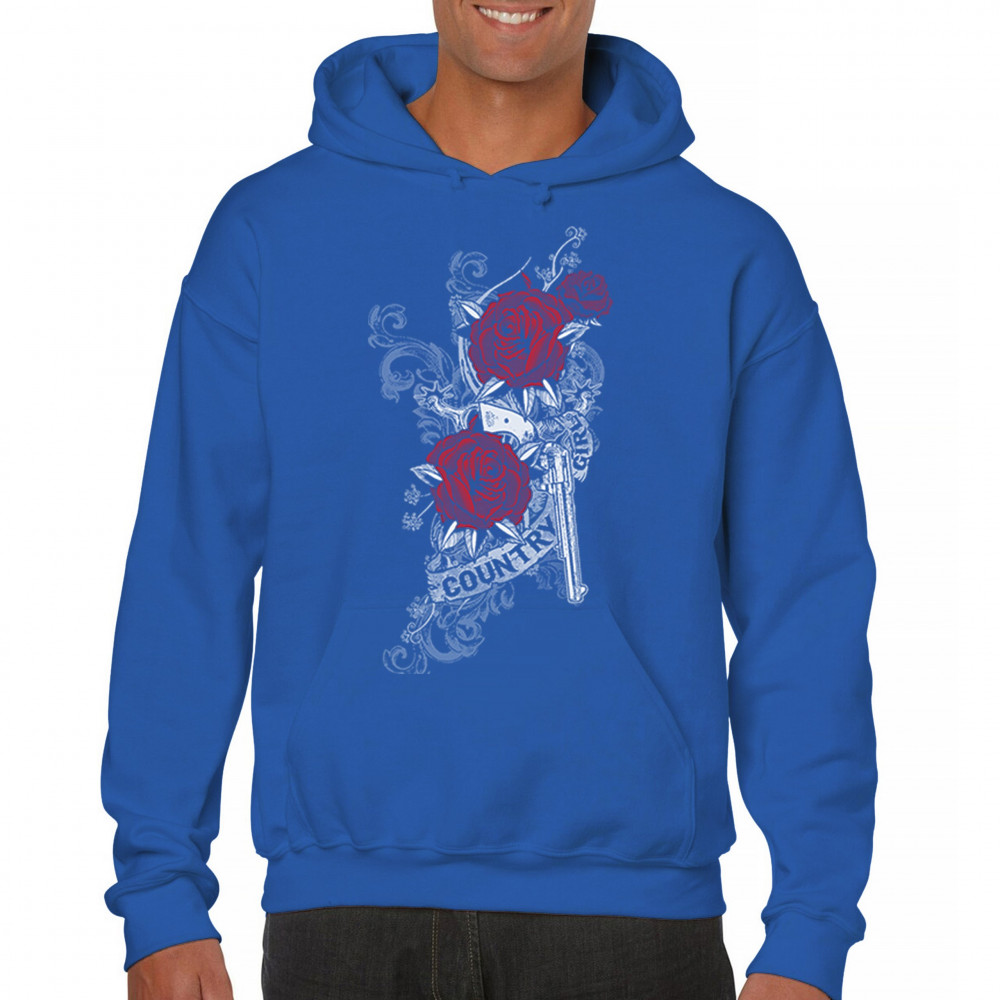 This western-inspired design features a silver revolver wrapped in deep red roses and scrolling filigree. A perfect balance of bold and beautiful, it’s ideal for country girls who ride strong, dress proud, and love a design that speaks to both grit and grace. Great for nights out, fairs, and rodeo weekends.
