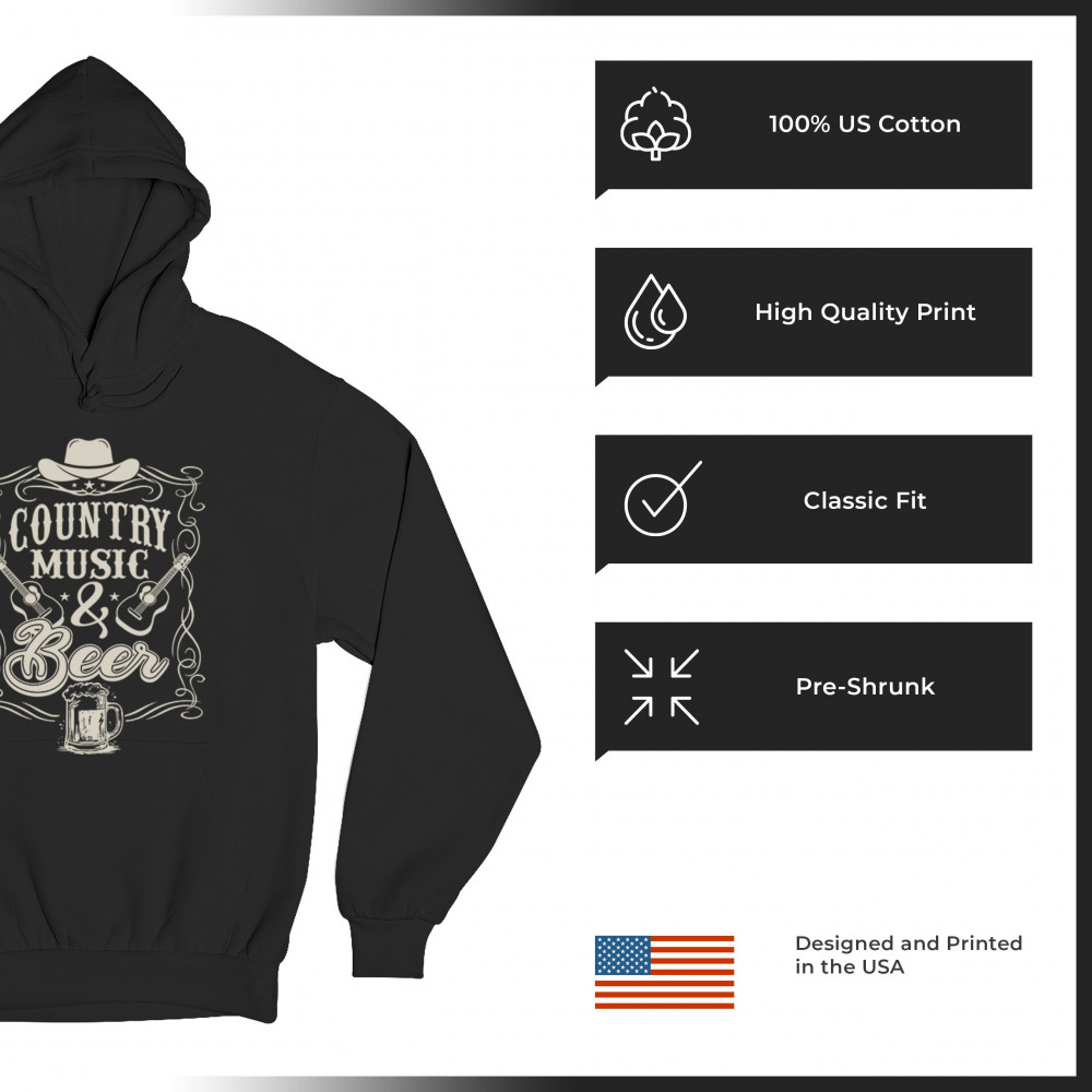 Channel your inner country star with this vintage-style design featuring guitars, a cowboy hat, scroll flourishes, and a cold beer mug. Perfect for fans of country music and beer who love rodeos, tailgates, festivals, or just chilling at the bar. Rustic charm and southern soul meet in one perfect print.