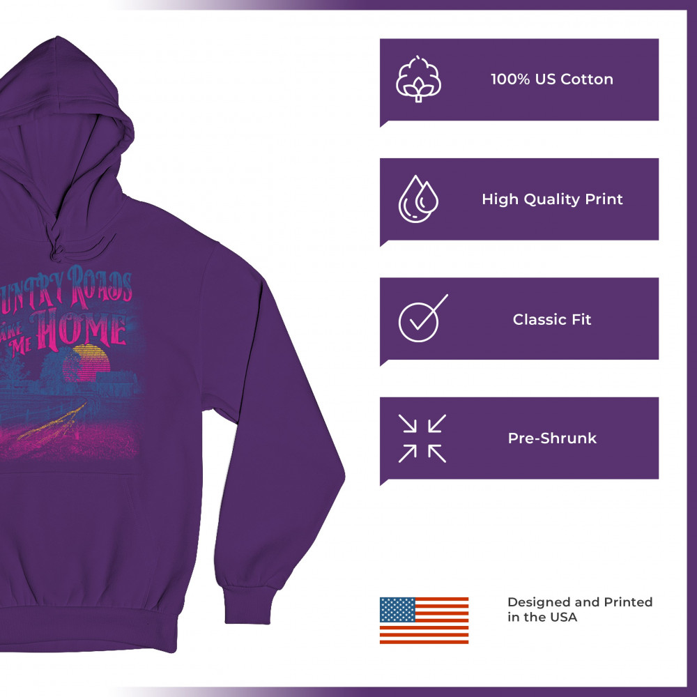 Retro sunset "Country Roads Take Me Home" design for road trip lovers, Americana fans, and country music souls. Bright, bold, and nostalgic.