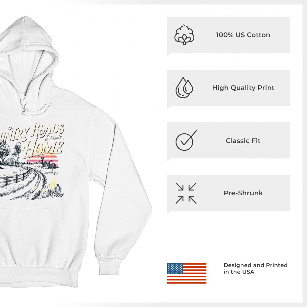 Celebrate your love for small town charm and scenic drives with this nostalgic country roads design. Featuring a bold "Take Me Home" message over a retro-styled sunset, it’s ideal for road trips, summer nights, fairs, concerts, and rural adventures. Let your wanderlust and country soul shine in every mile.