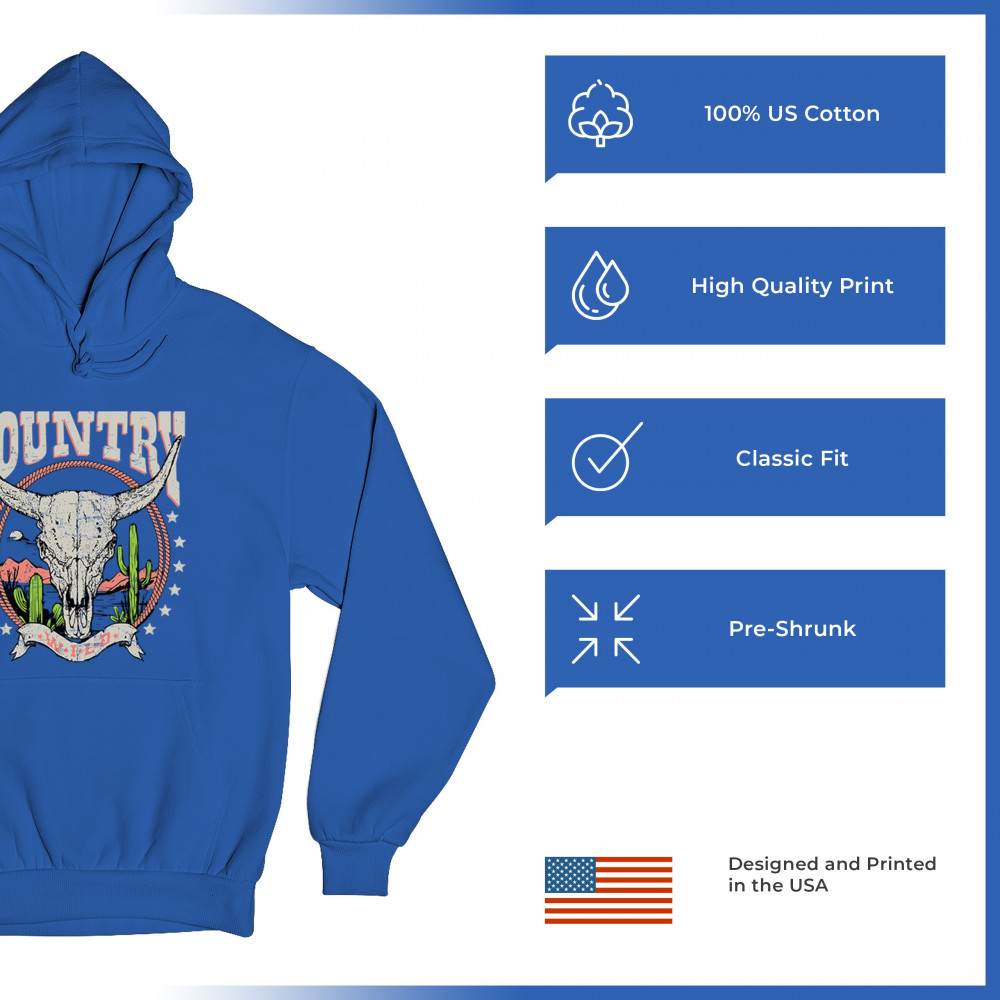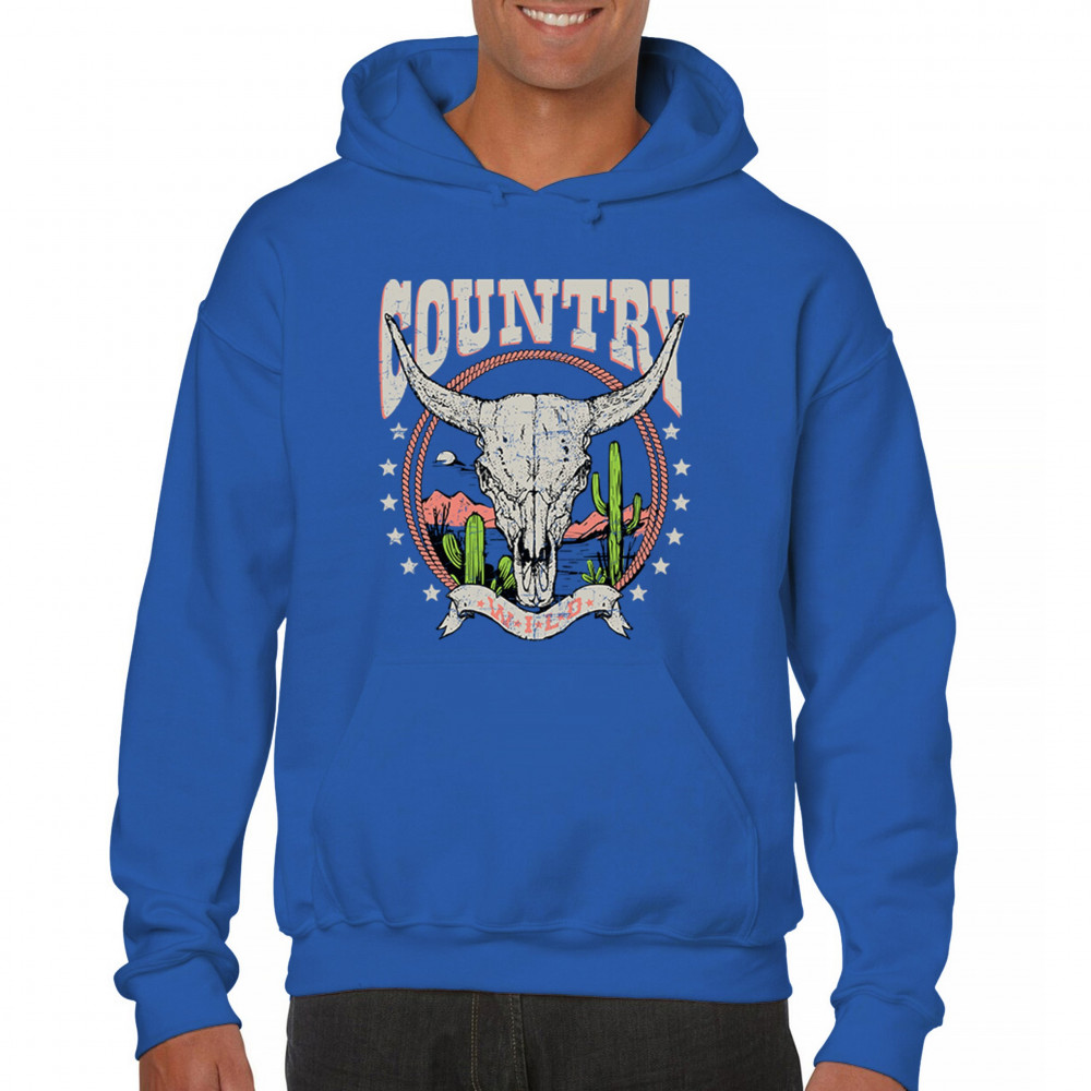 Country Wild features a steer skull with desert flair, perfect for rodeo cowboys, barn dances, country roots, and wild western spirit.