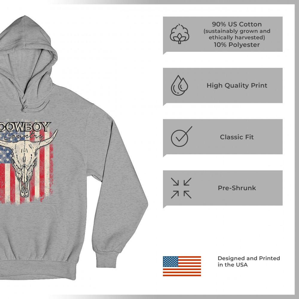 Celebrate western heritage with the Cowboy Country steer skull design, layered over a distressed American flag. This artwork embodies rustic Americana, rodeo style, and desert vibes. Perfect for cowboy décor lovers, ranch life enthusiasts, and those drawn to the wild west’s grit and prairie aesthetic. Wear your frontier spirit proudly.