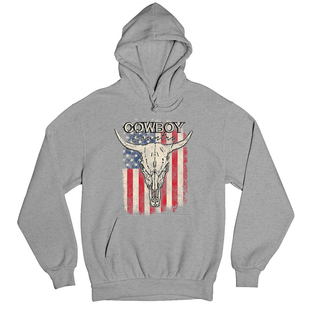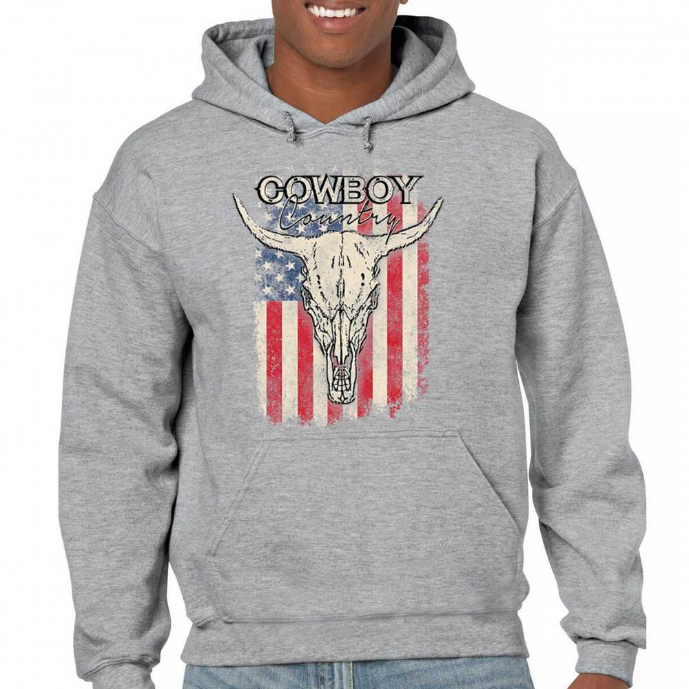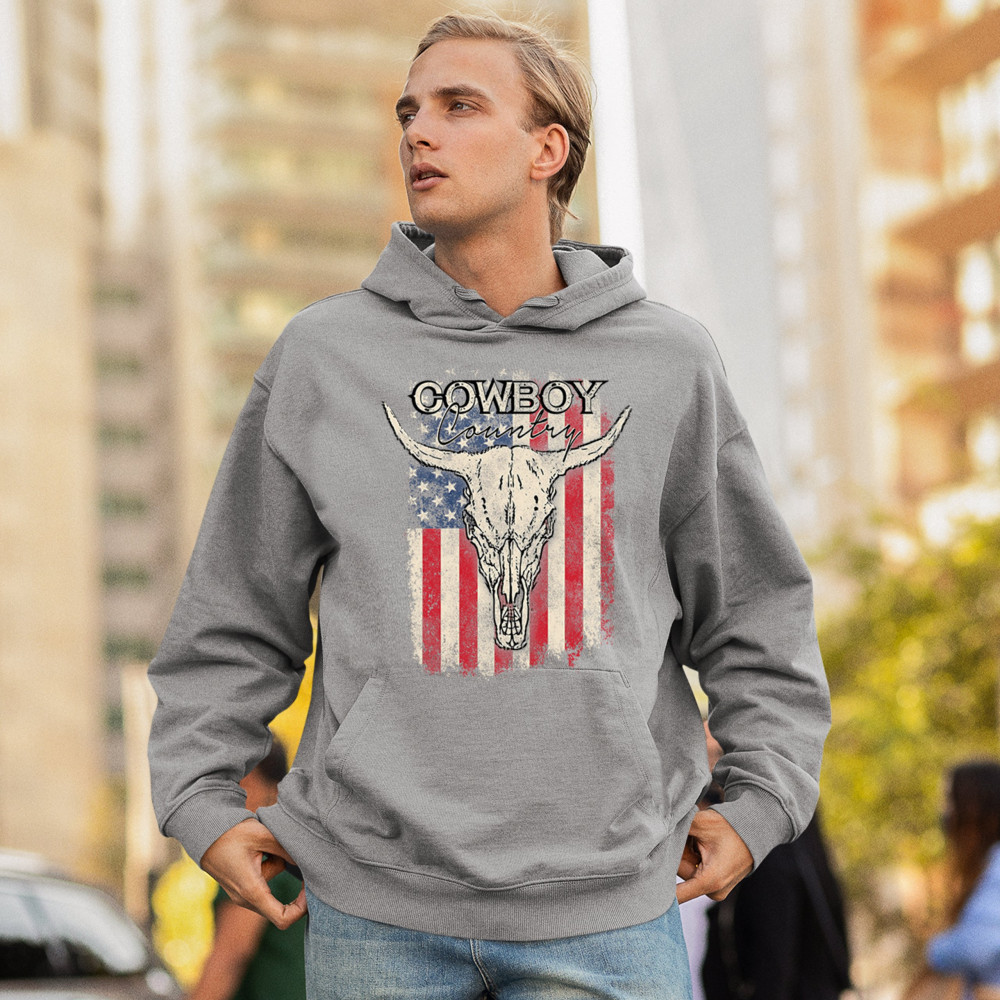 Cowboy Country steer skull design fuses rustic Americana, rodeo style, western heritage, and desert vibes for true frontier spirit.