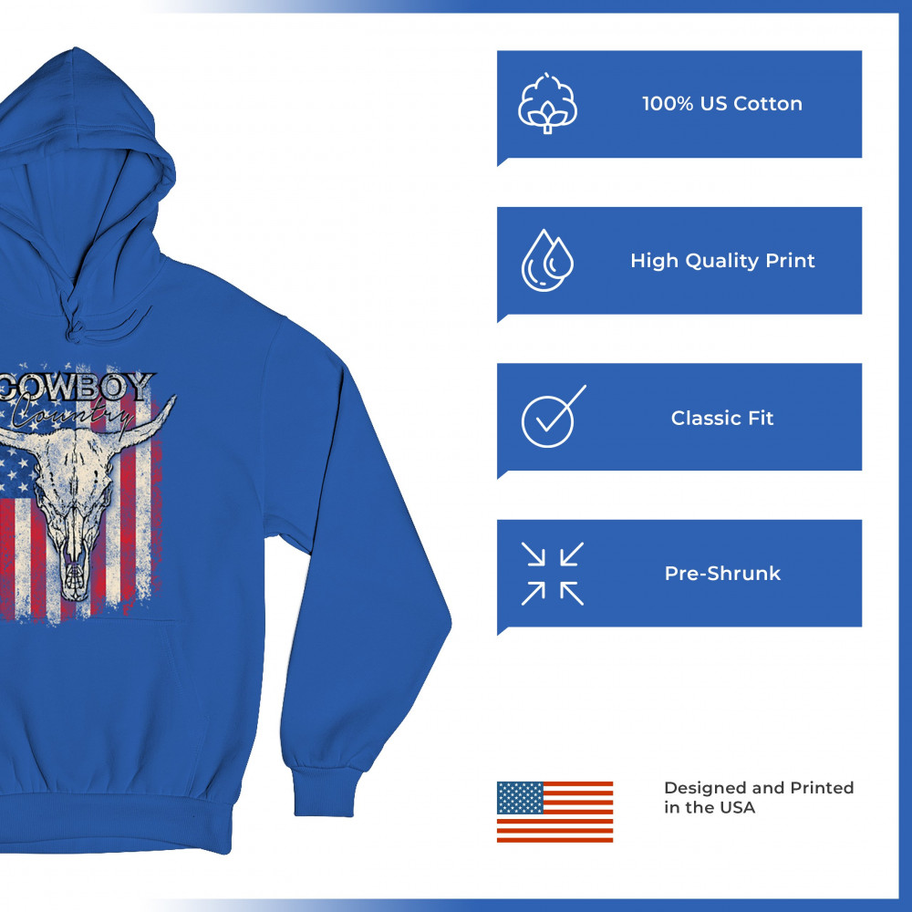 Celebrate western heritage with the Cowboy Country steer skull design, layered over a distressed American flag. This artwork embodies rustic Americana, rodeo style, and desert vibes. Perfect for cowboy décor lovers, ranch life enthusiasts, and those drawn to the wild west’s grit and prairie aesthetic. Wear your frontier spirit proudly.