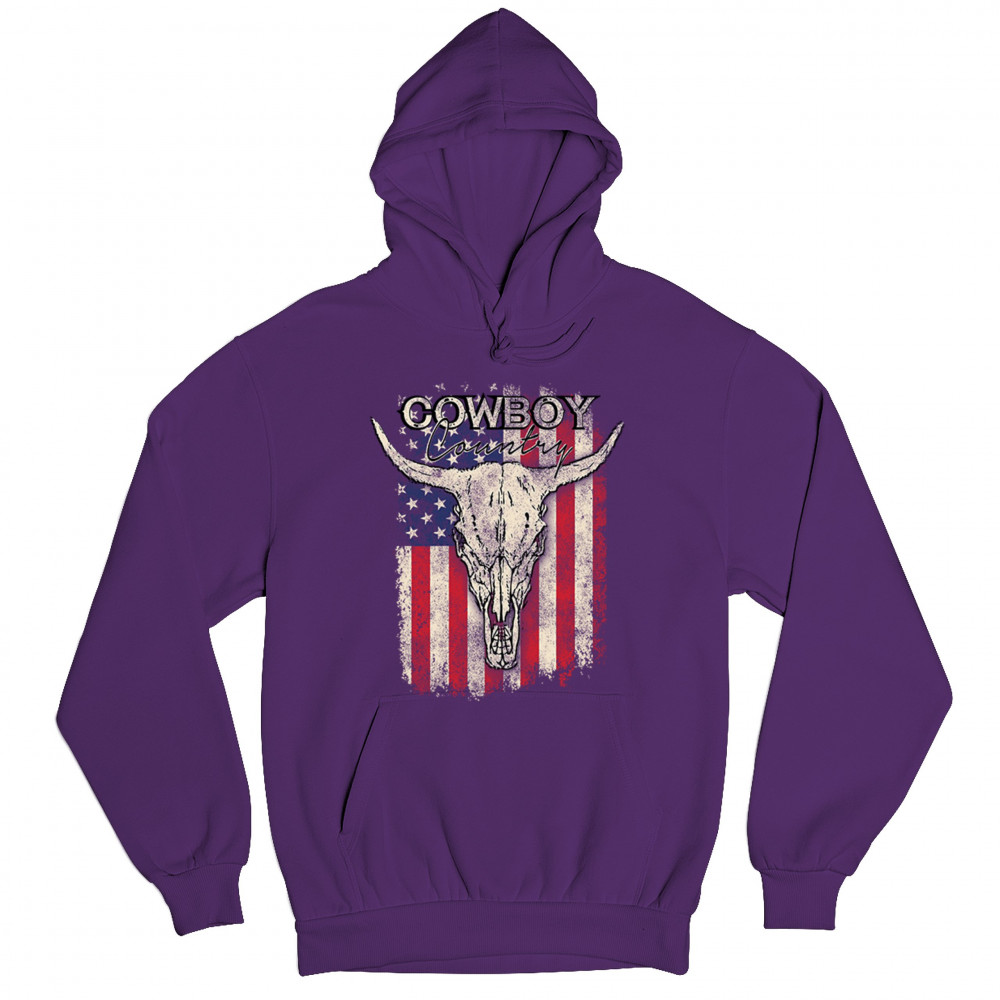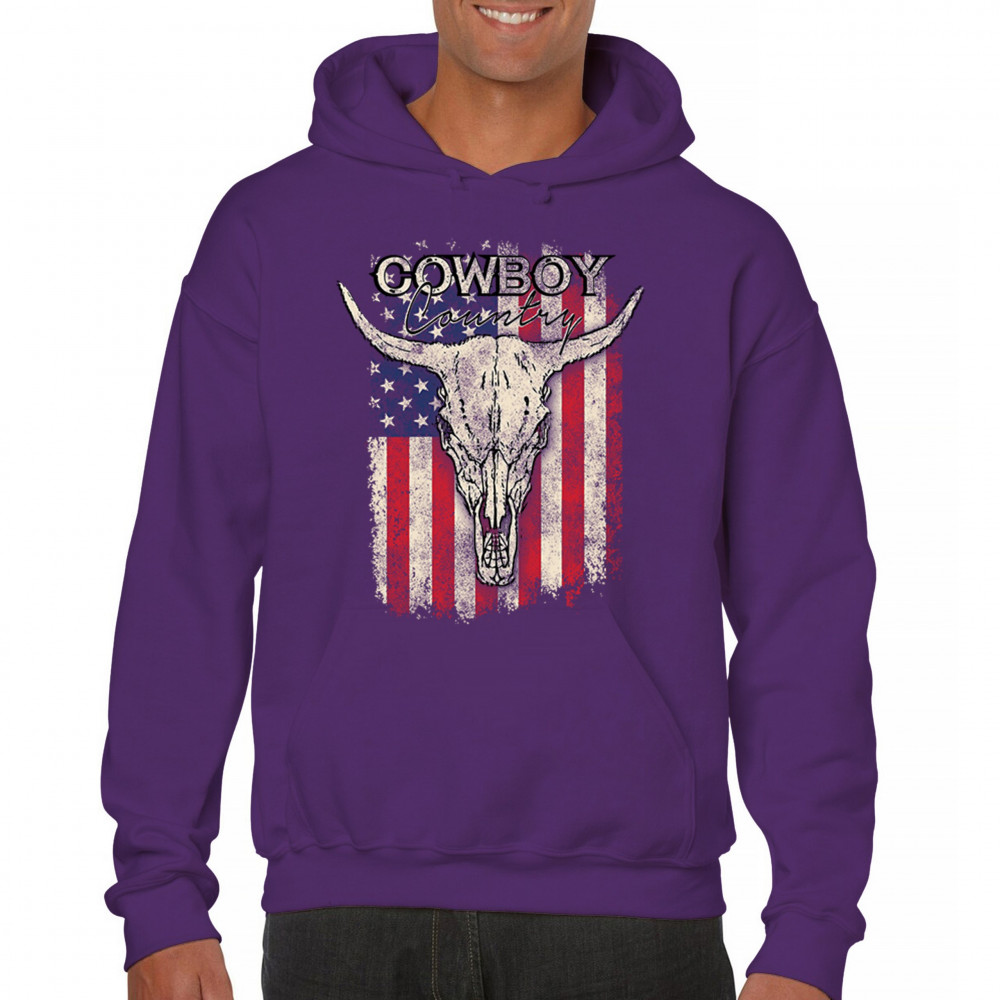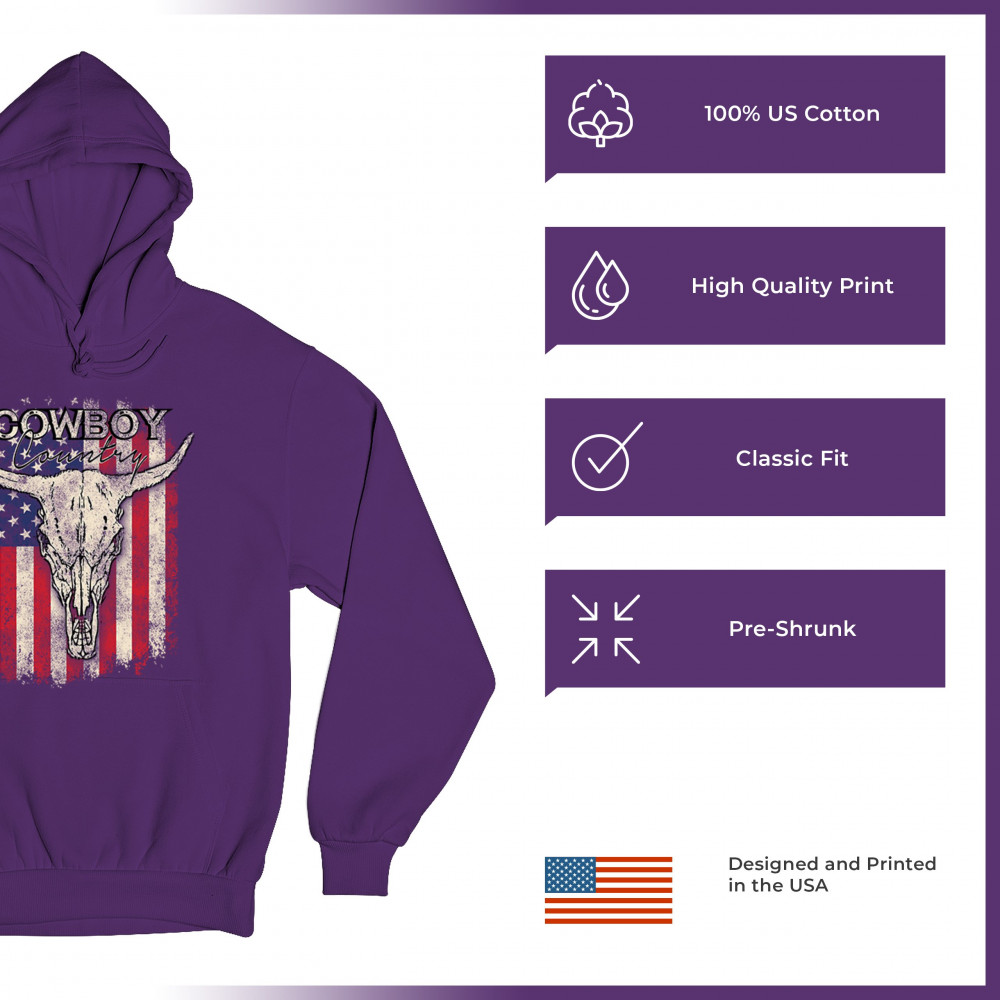 Cowboy Country steer skull design fuses rustic Americana, rodeo style, western heritage, and desert vibes for true frontier spirit.