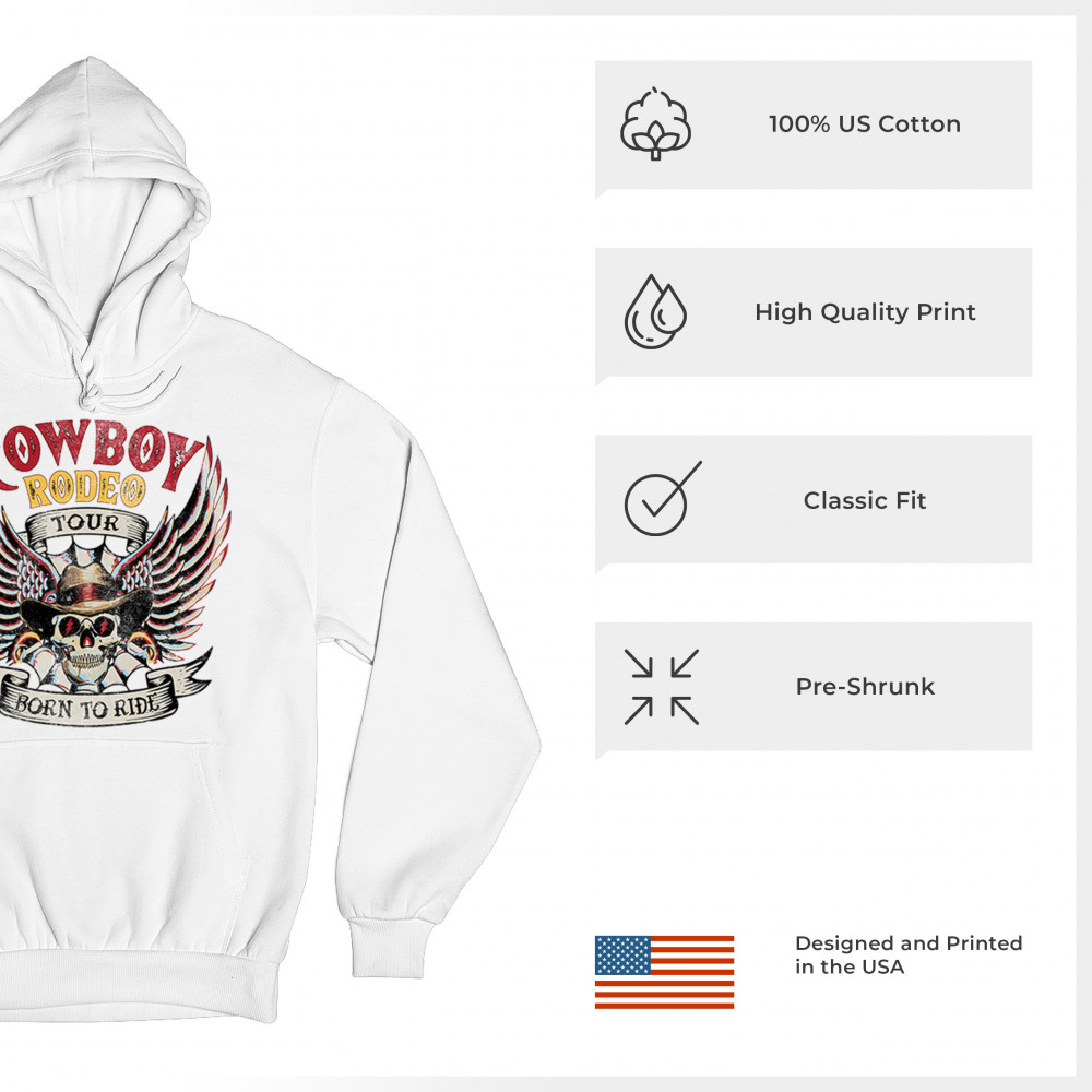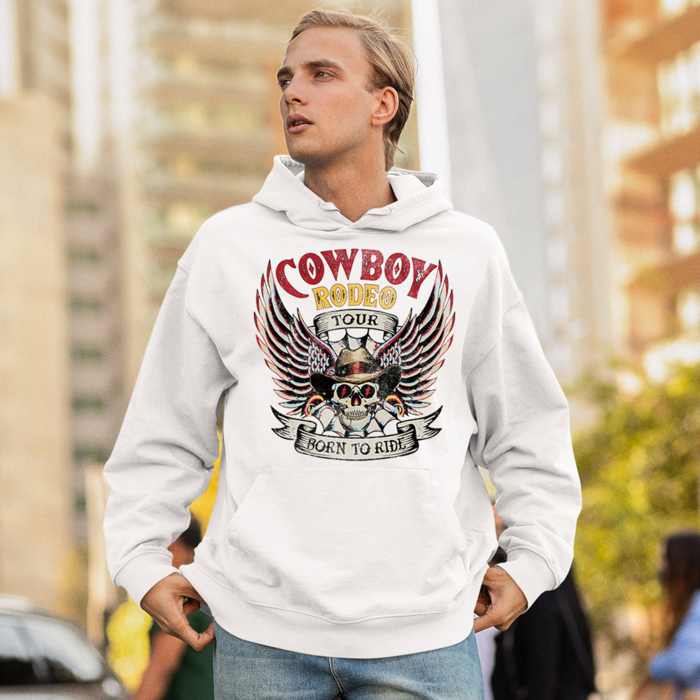Cowboy Rodeo Tour “Born to Ride†design with skull, wings, and western grit. Built for riders, rebels, and rodeo fans who live wild.