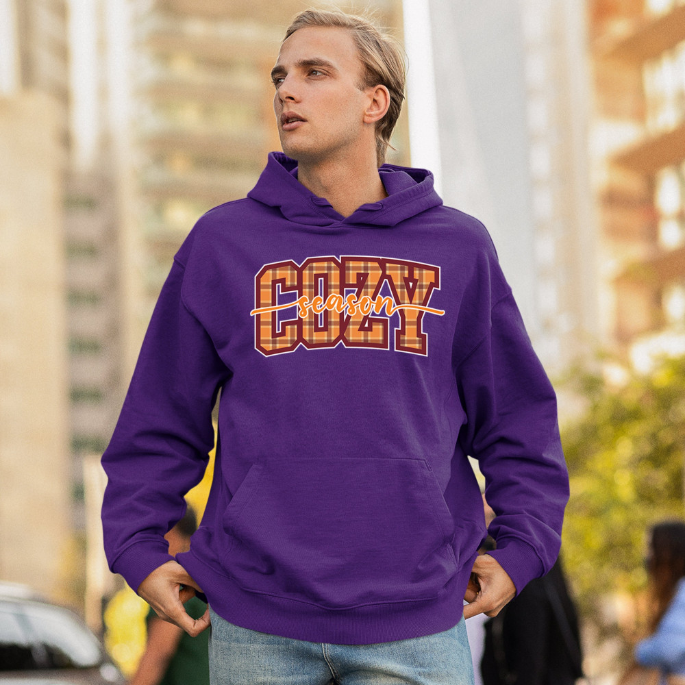 Celebrate fall with this "Cozy Season" plaid design. Perfect for autumn lovers who cherish cozy days, warm drinks, and the beauty of the season.