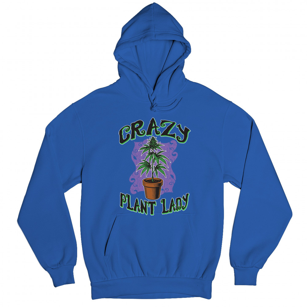 CRAZY PLANT LADY sweatshirt cannabis grower marijuana pothead 420 thc hoodie royal blue