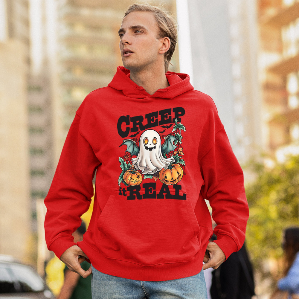 Celebrate Halloween with this playful "Creep It Real" ghost design, perfect for fall activities, pumpkin patches, and spooky parties!