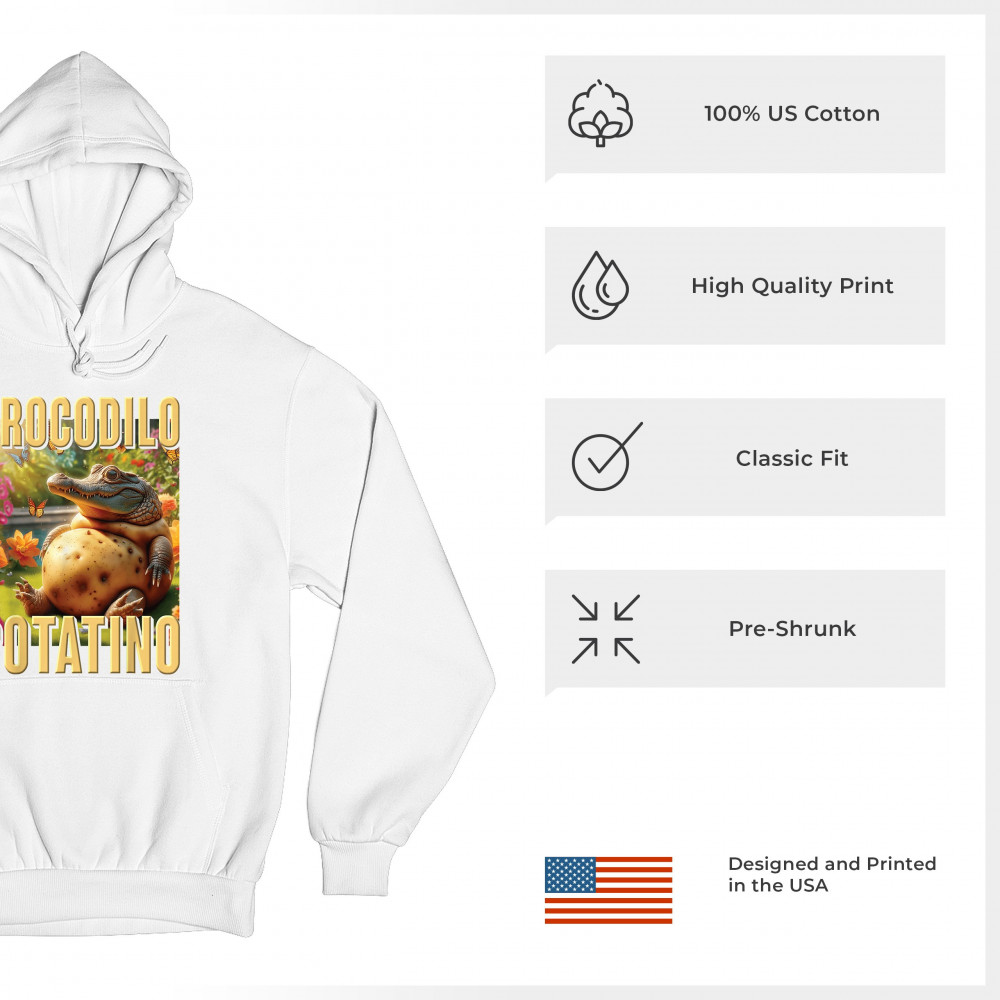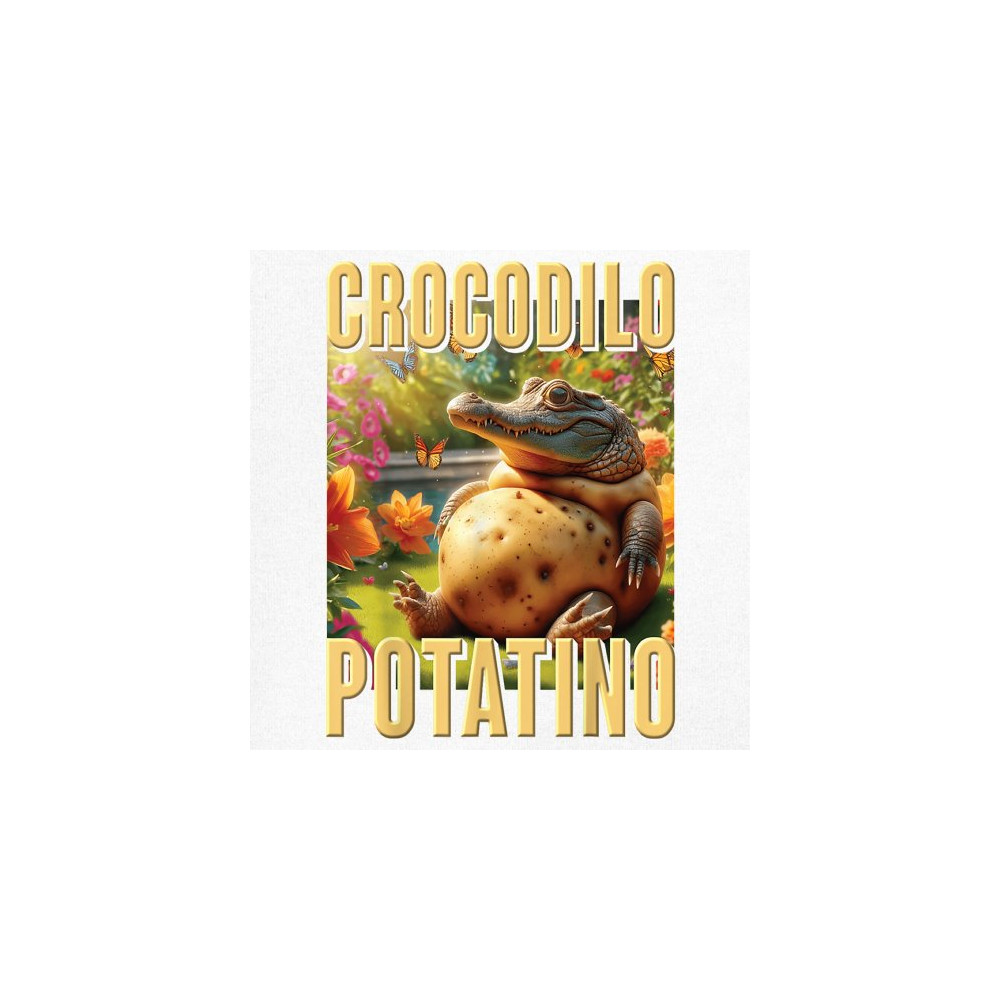 Crocodilo Potatino lives rent-free in a butterfly field of cursed bliss. This surreal croc-potato combo blends weirdcore aesthetic, viral Gen Z humor, ironic internet fashion, and TikTok meme absurdity. Built for lovers of odd animal mashups, cursed-core comedy, and viral brainrot streetwear.