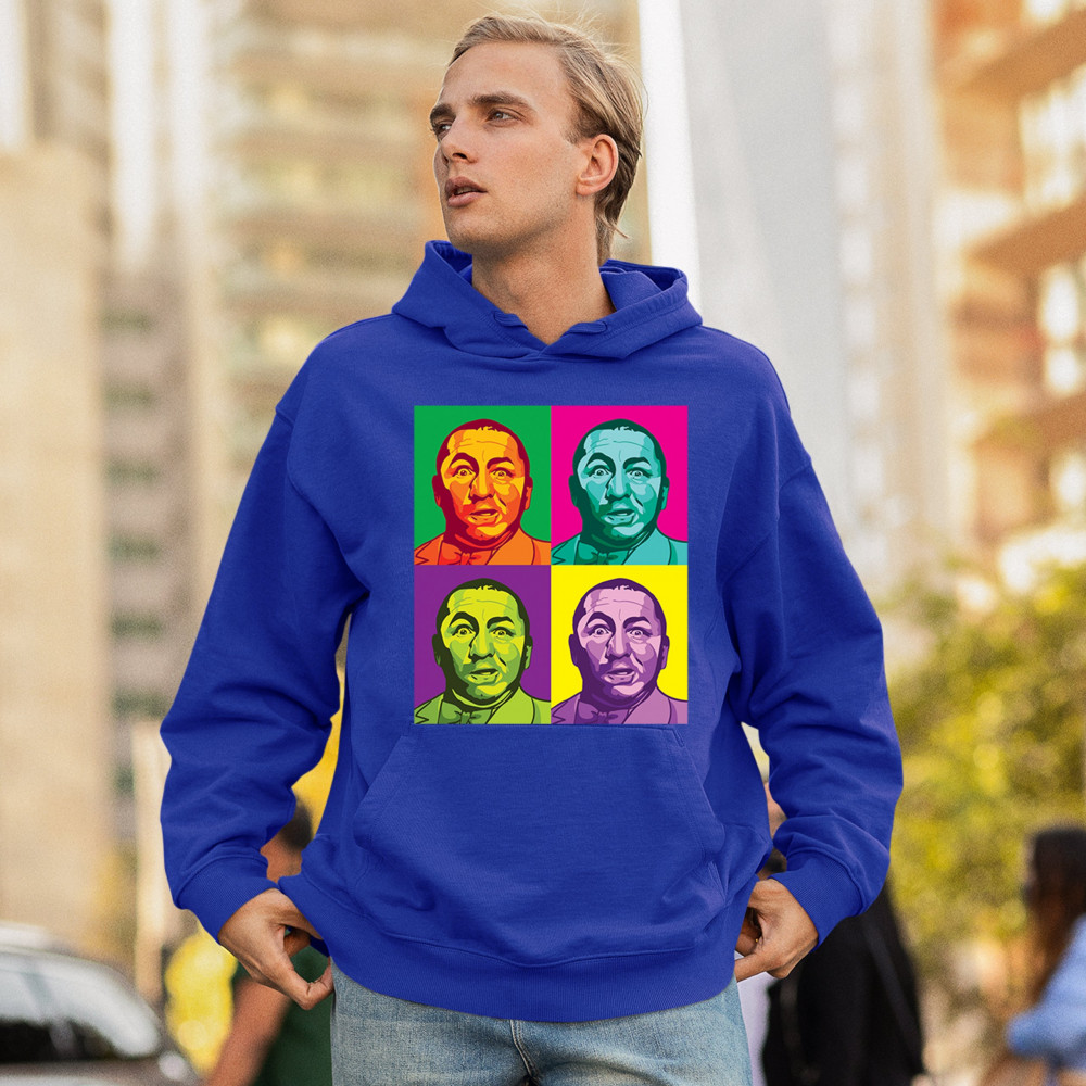 Introducing our dazzling pop art collection, headlined by the inimitable Curly of the Three Stooges! With a quartet of vivid hues, this T-shirt is a contemporary twist on classic humor. It's a standout piece for any fan's collection, capturing the timeless expression of Curly in a modern art style that's sure to turn heads and spark smiles.