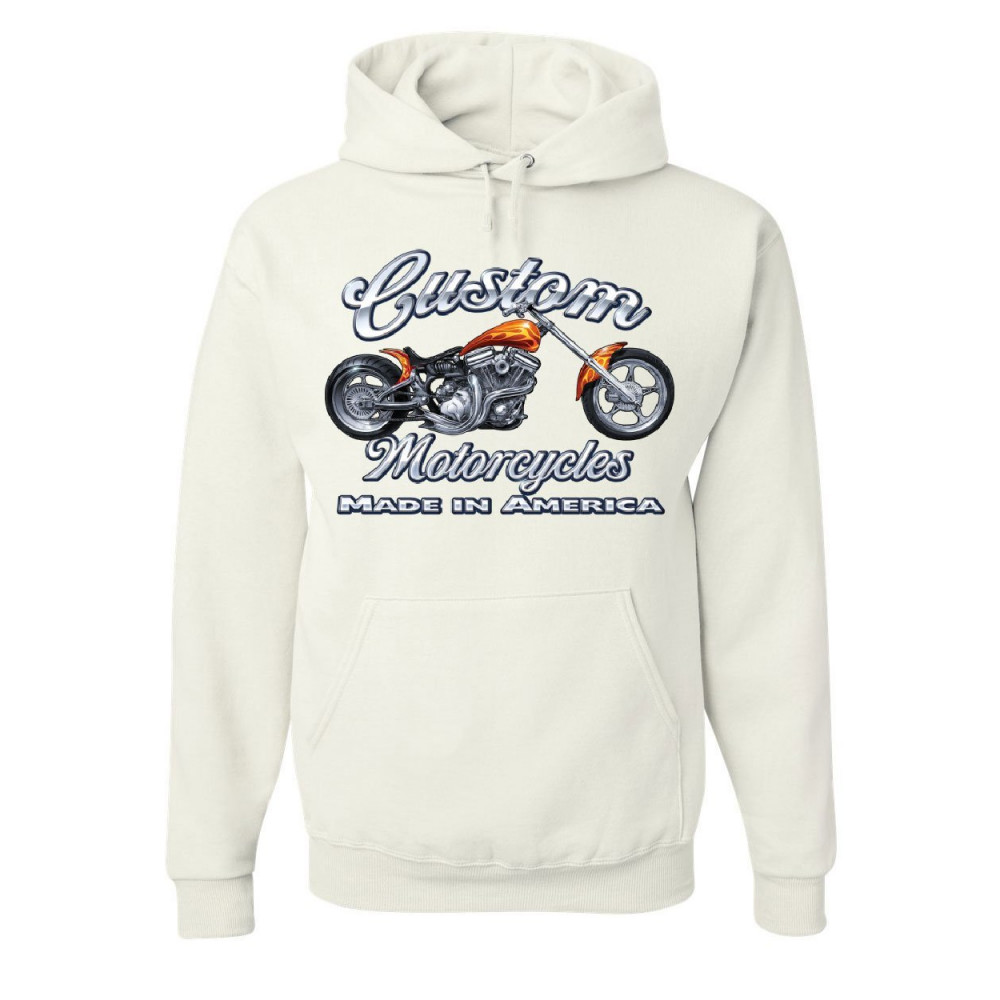 CUSTOM MOTORCYCLES hoodie biker chopper american tradition usa sweatshirt white