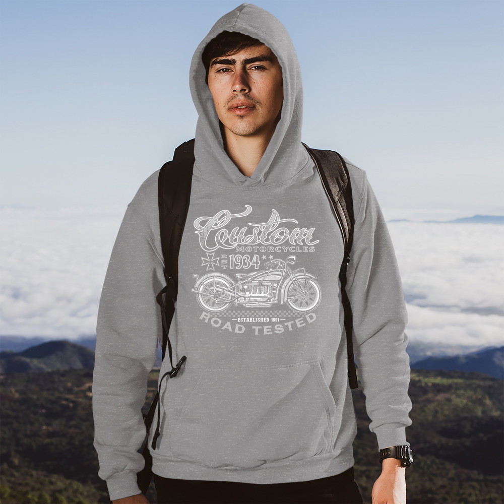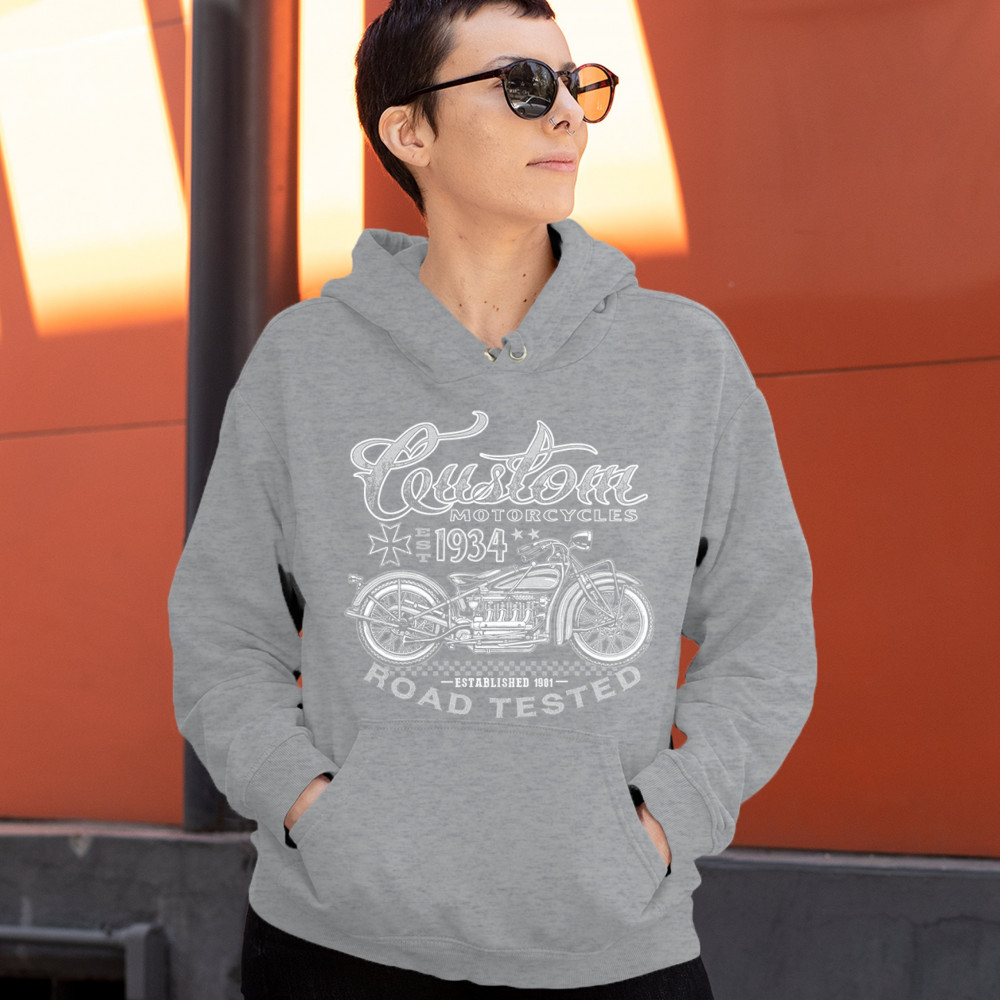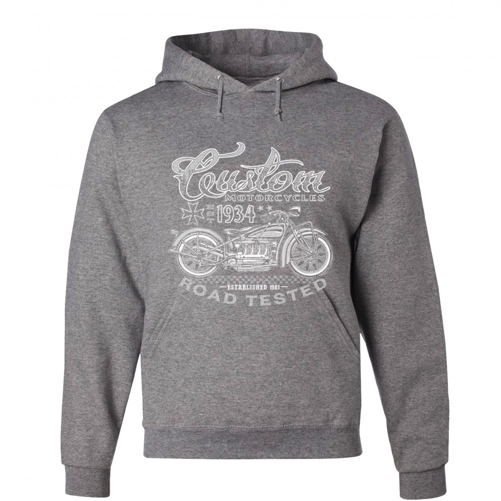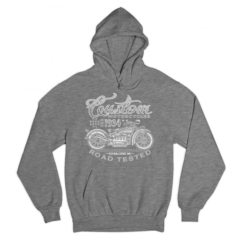 CUSTOM MOTORCYCLES ROAD TESTED sweatshirt bobber biker gang mc hoodie gray
