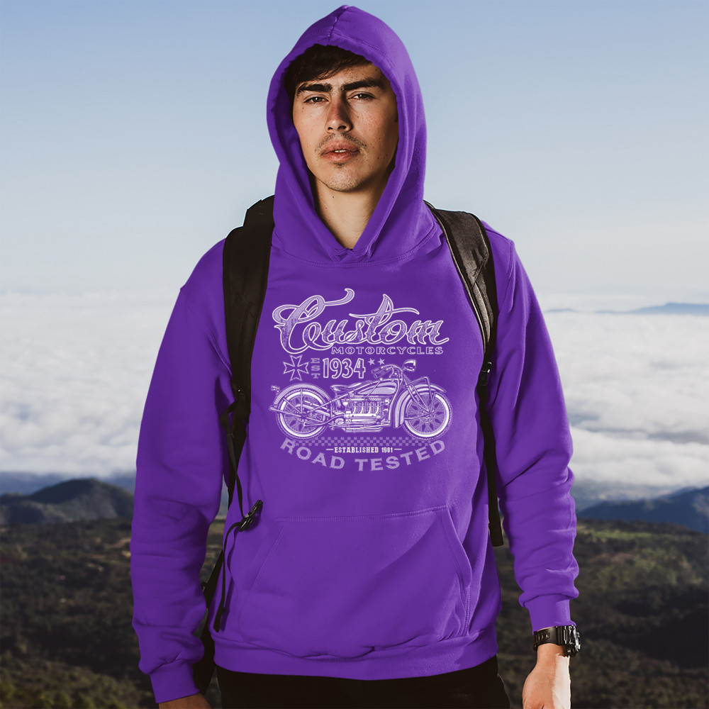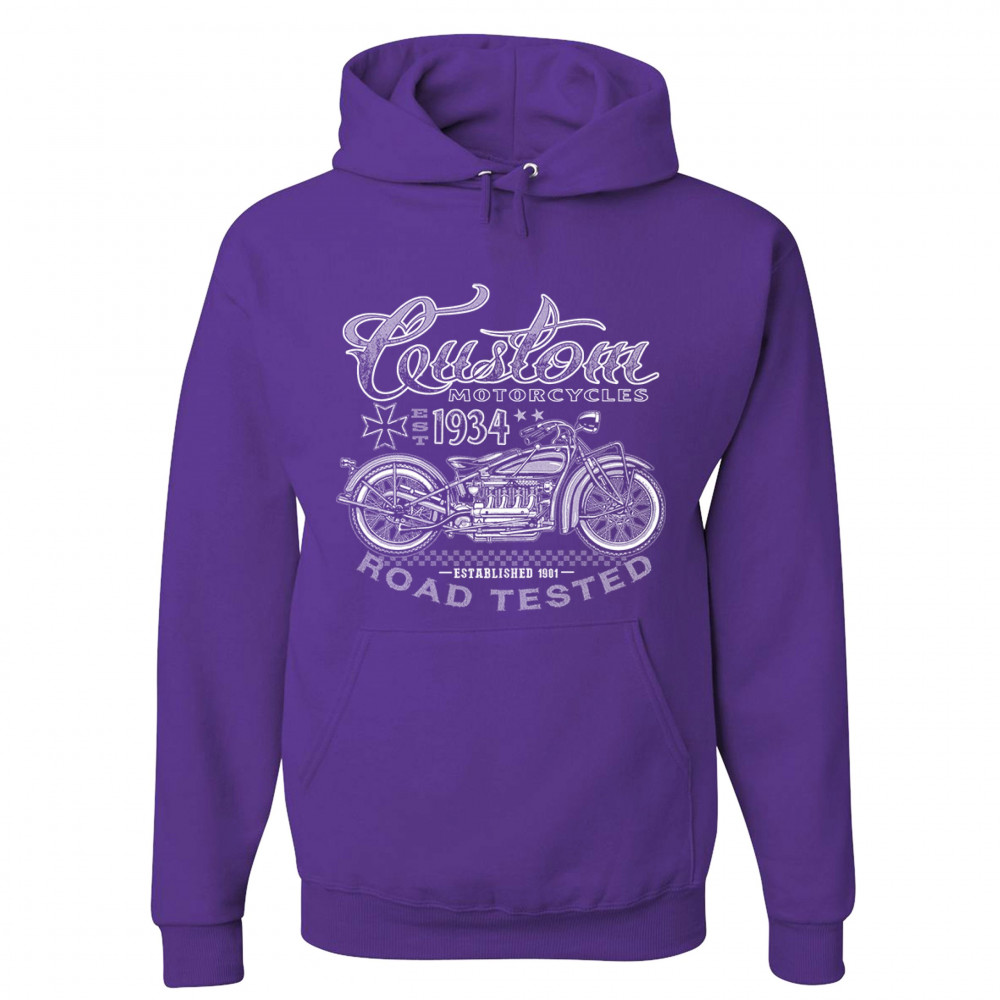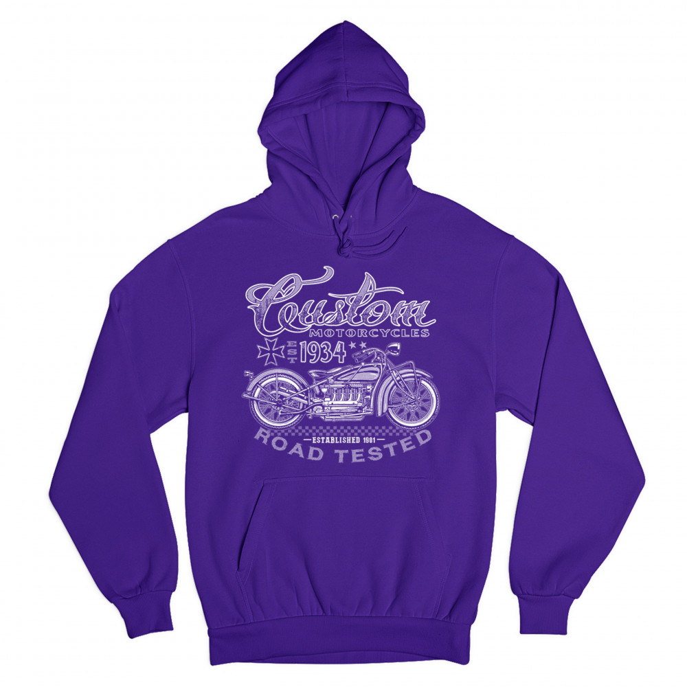 CUSTOM MOTORCYCLES ROAD TESTED sweatshirt bobber biker gang mc hoodie purple
