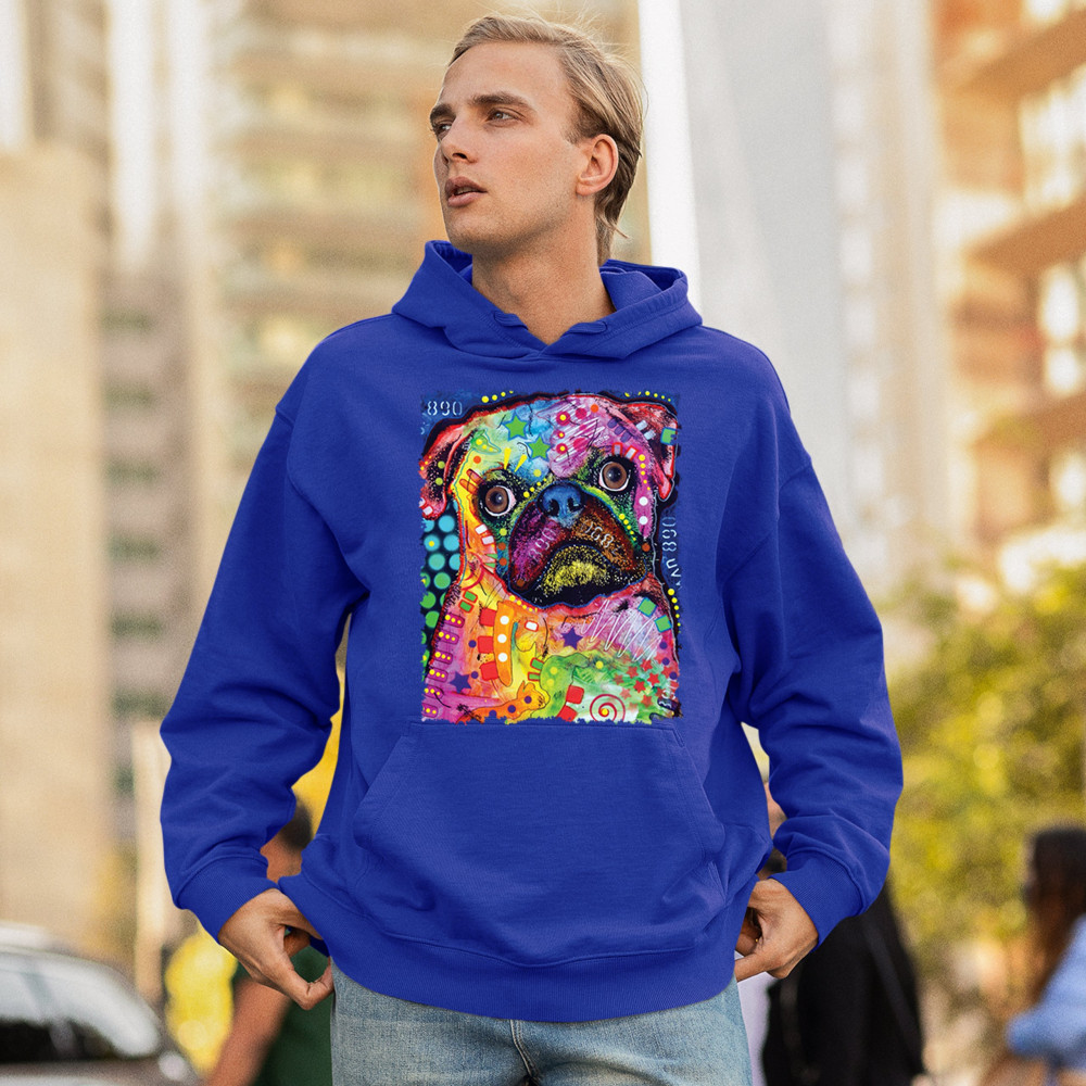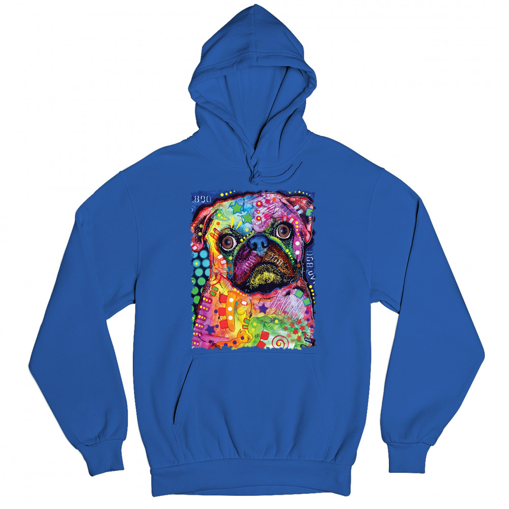 CUTE PUG PUPPY sweatshirt dean russo colorful neon mosaic dog art hoodie royal blue