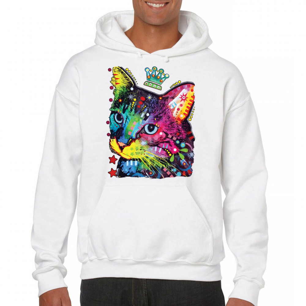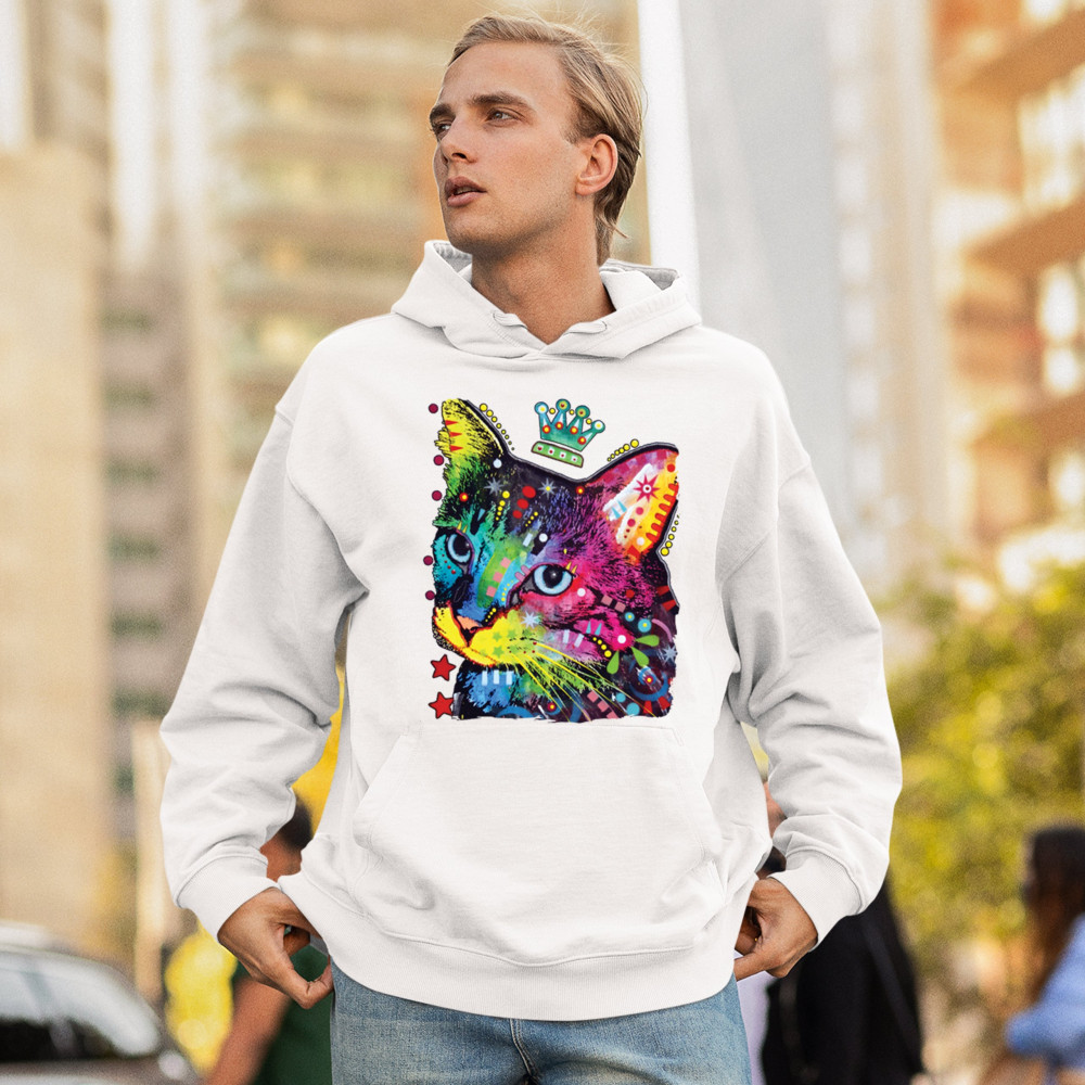 CUTE THINKING CROWNED CAT sweatshirt dean russo colorful kitten hoodie white