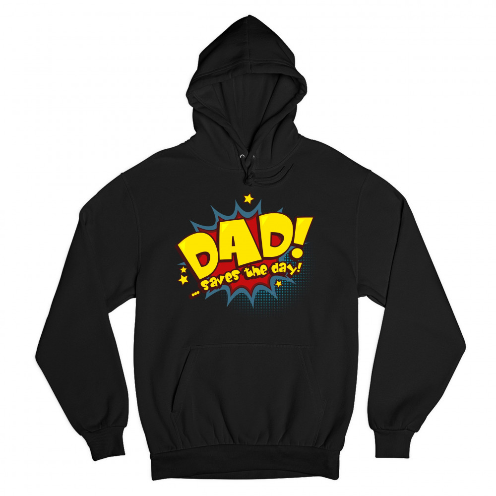 DAD SAVES THE DAY! sweatshirt father's day world's greatest dad hoodie black