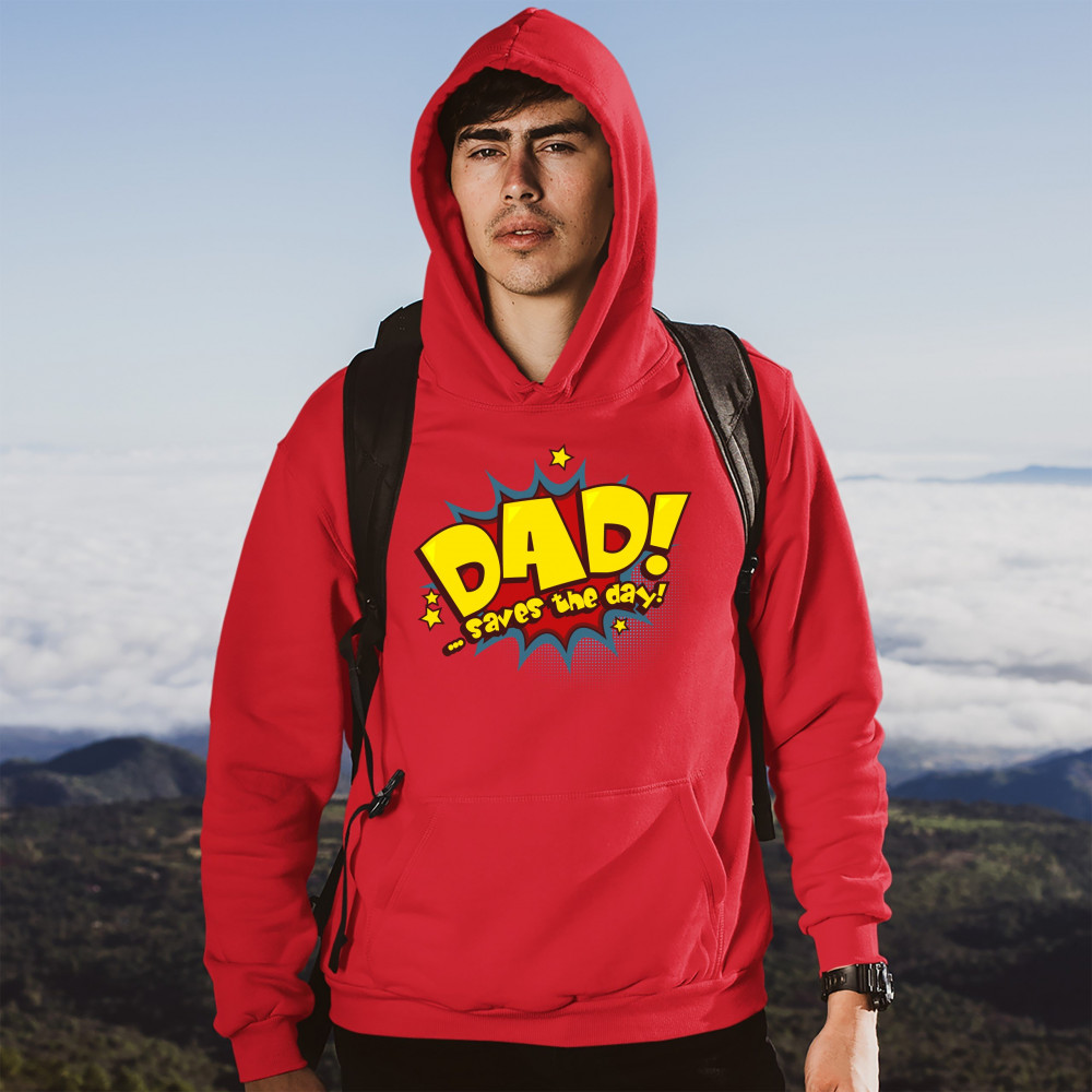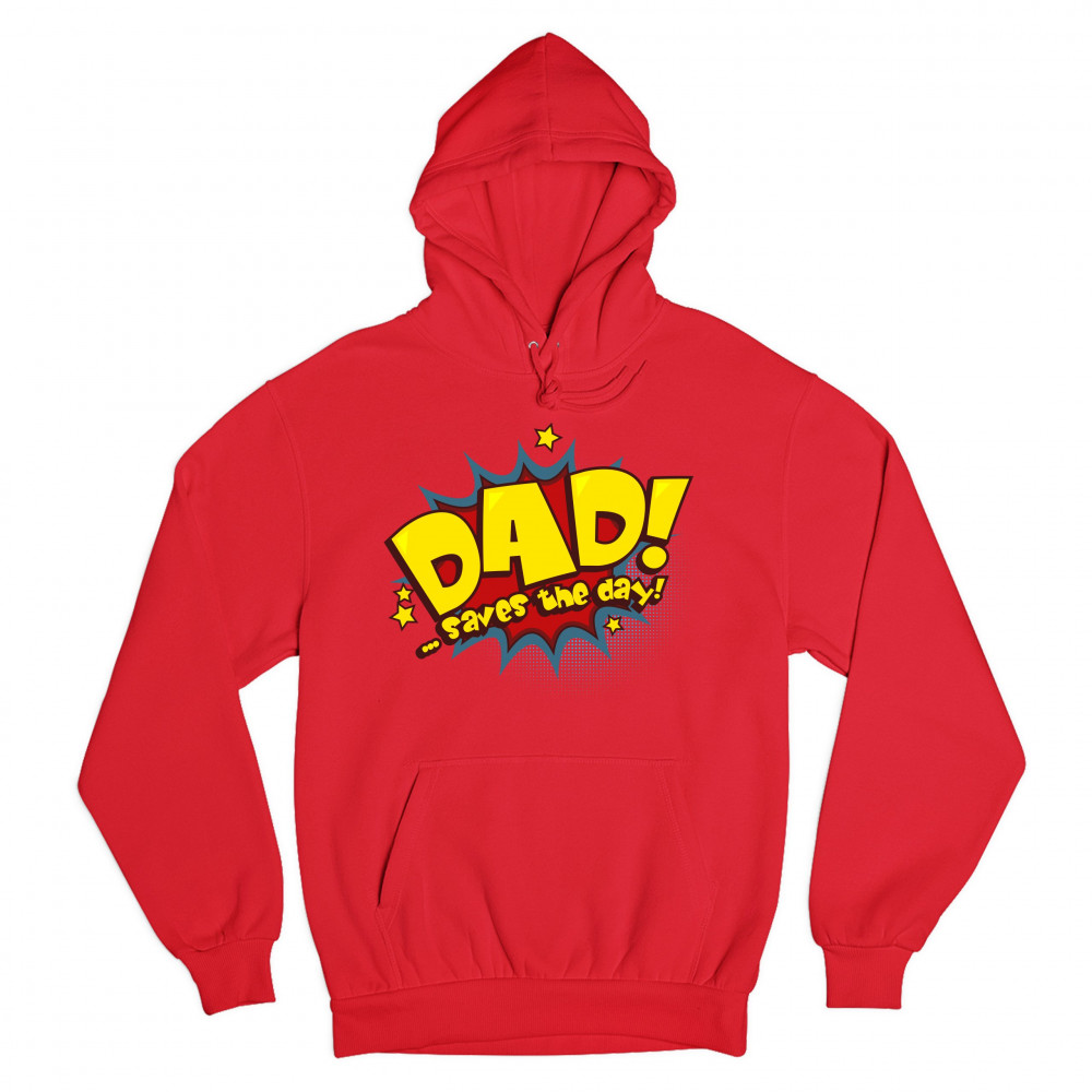 DAD SAVES THE DAY! sweatshirt father's day world's greatest dad hoodie red