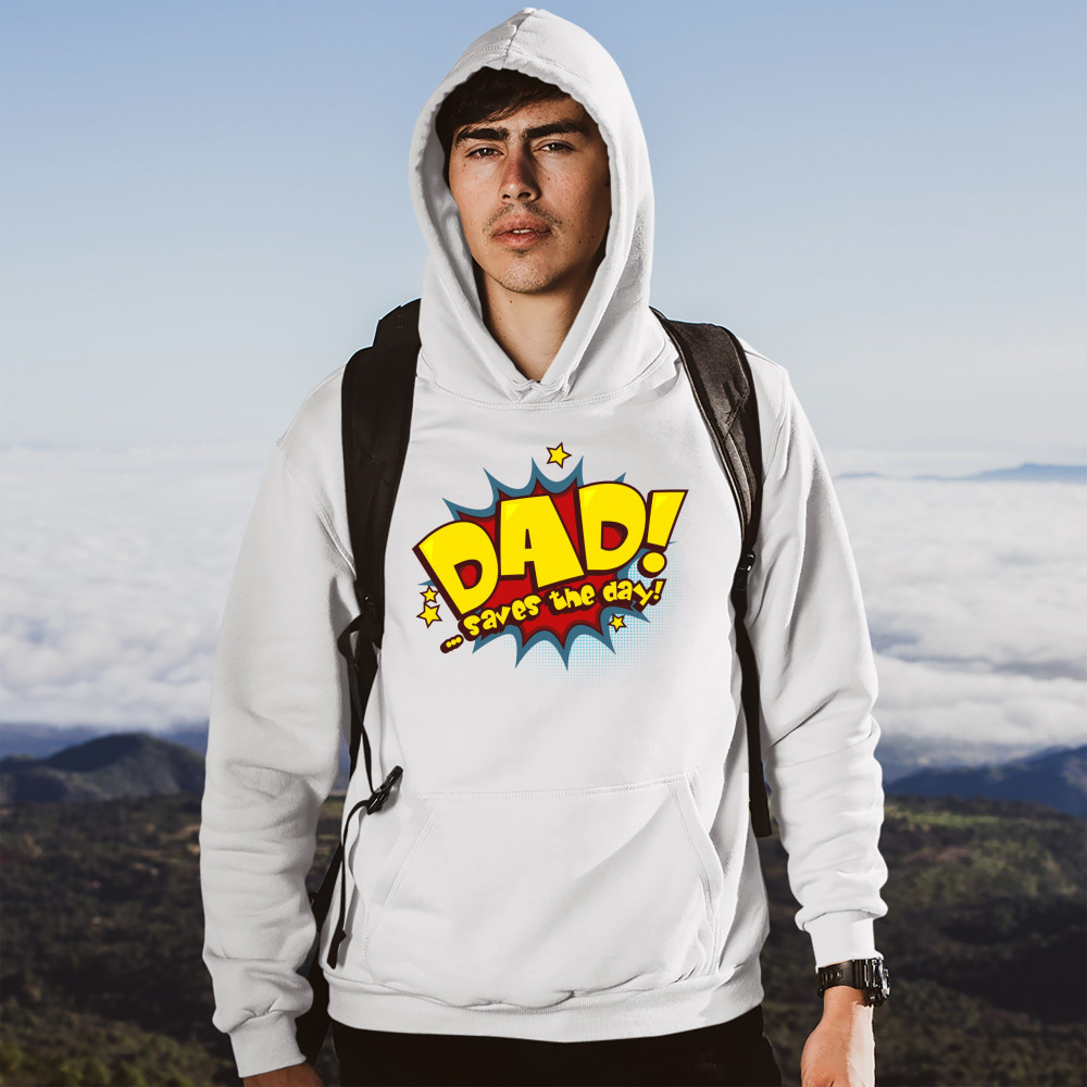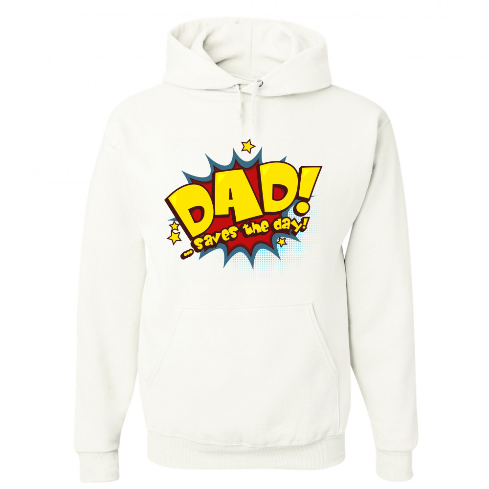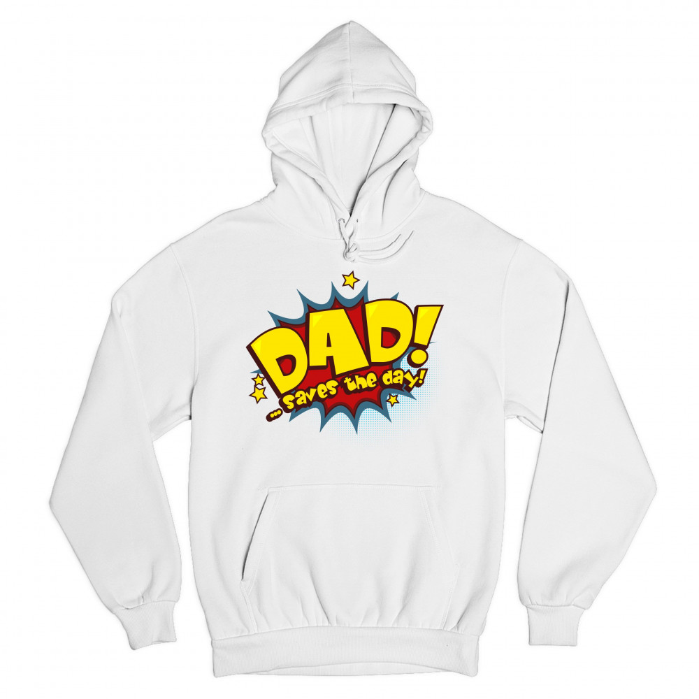DAD SAVES THE DAY! sweatshirt father's day world's greatest dad hoodie white