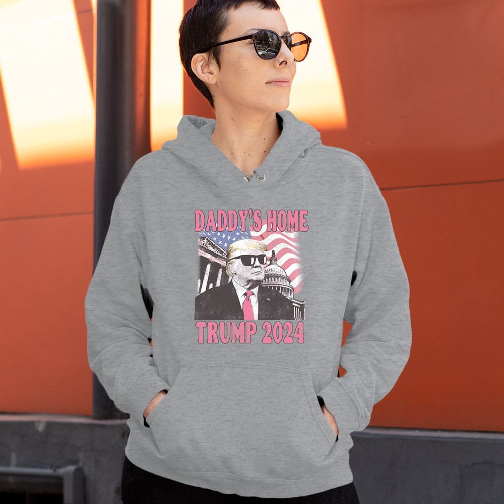 Support Donald Trump with our "Daddy's Home Trump 2024" design, showcasing strength and patriotism. Perfect for conservative supporters.