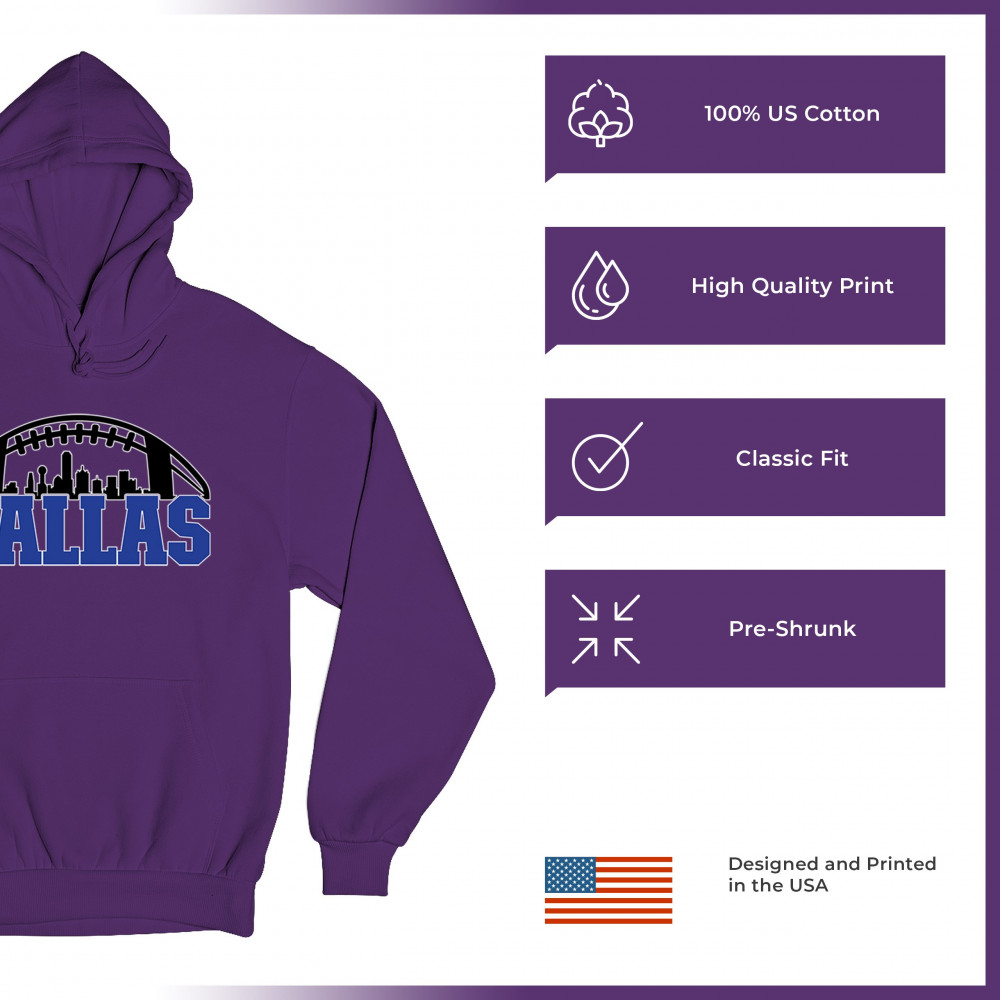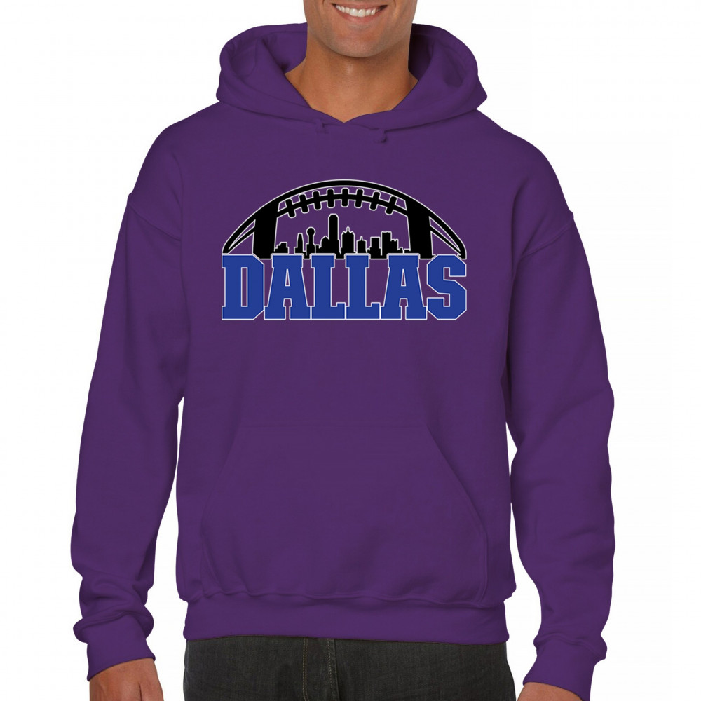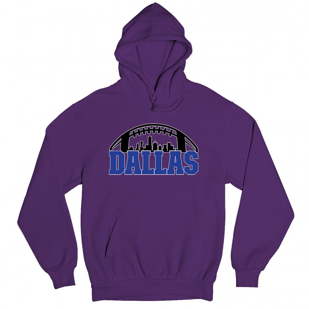 Show off your Dallas pride with a bold football-themed design featuring the city's skyline. Perfect for game days, tailgates, and passionate fans.