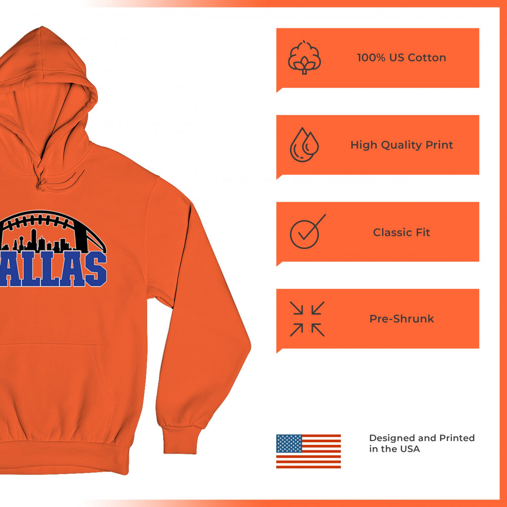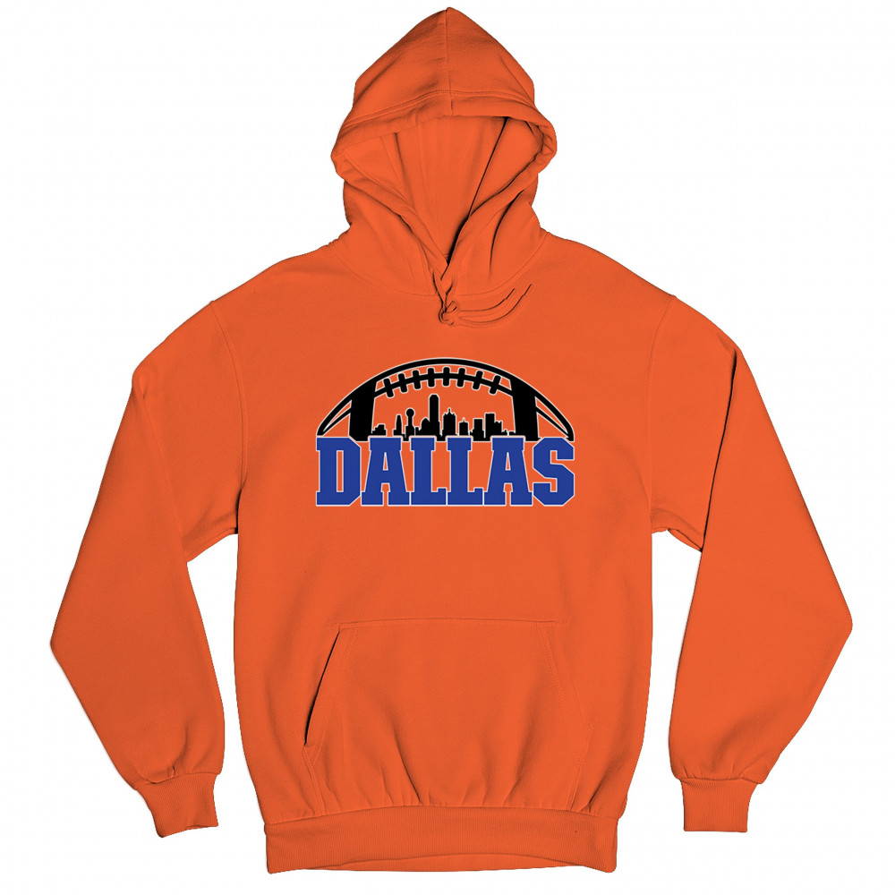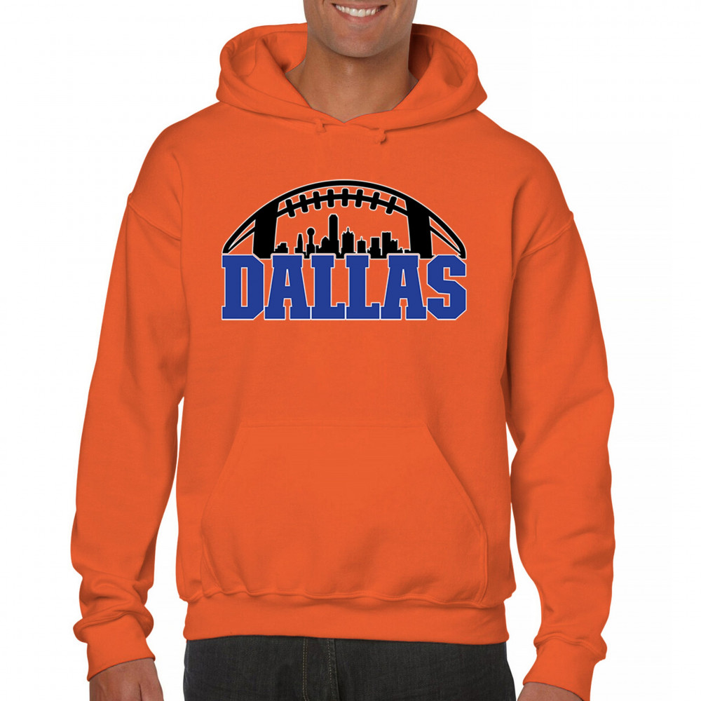 Show off your Dallas pride with a bold football-themed design featuring the city's skyline. Perfect for game days, tailgates, and passionate fans.