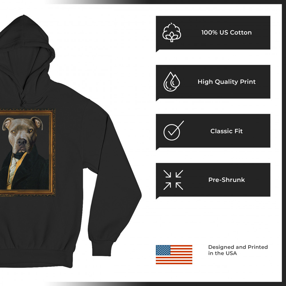 Add a touch of humor and class to your decor with our pit bull portrait in 18th-century attire. This delightful design merges the playful charm of pit bulls with the sophisticated style of historical portraits. Perfect for pet lovers and history buffs alike, it brings a unique and artistic flair to any space. Available in various sizes and printed on high-quality material, this portrait promises lasting appeal and enjoyment. It also makes a thoughtful gift for friends and family who appreciate quirky and artistic home decor.