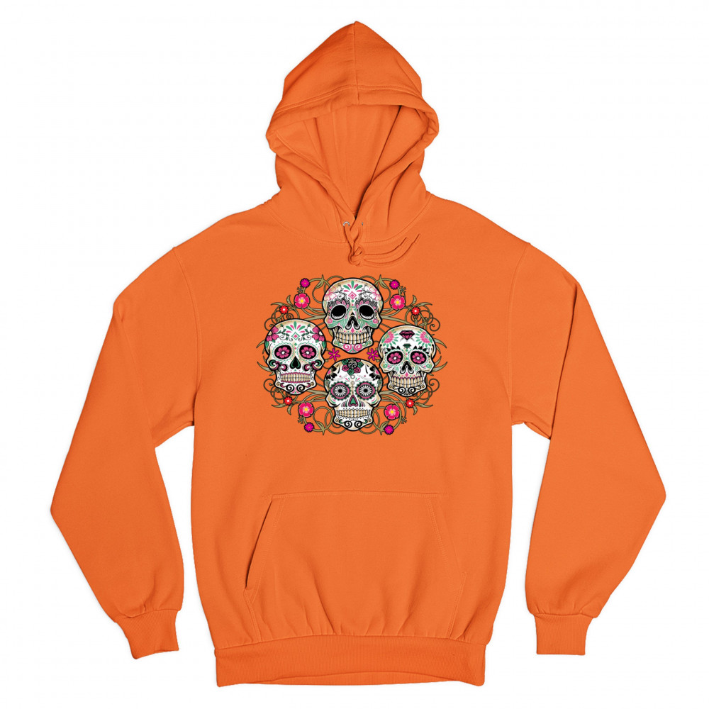 DAY OF THE DEAD FLORAL SUGAR SKULLS sweatshirt dia de los muertos hoodie orange