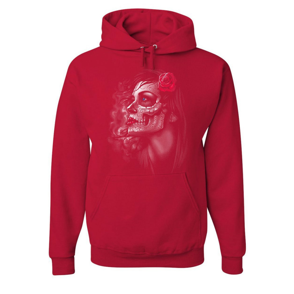DAY OF THE DEAD GIRL hoodie skull face dia de los muertos roses sweatshirt red