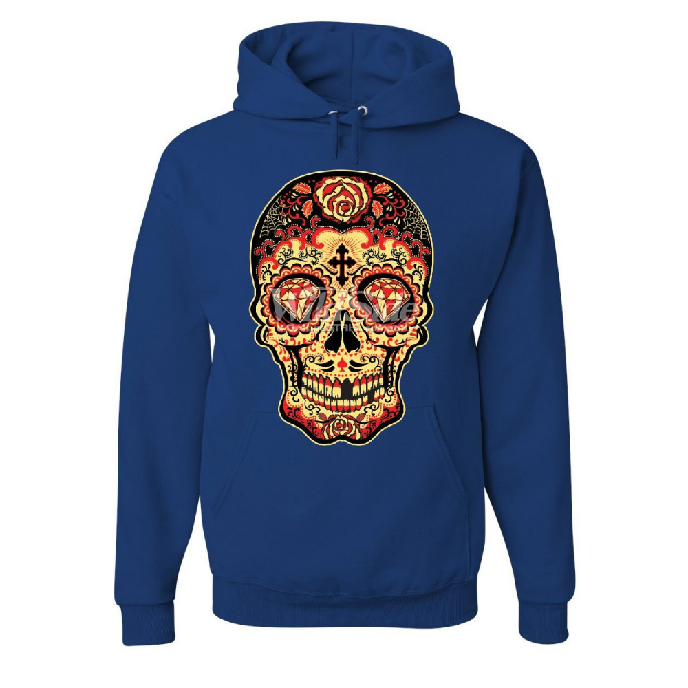 DAY OF THE DEAD SUGAR SKULL hoodie gold calavera dia de muertos sweatshirt royal blue