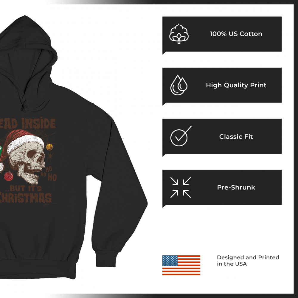 DEAD INSIDE BUT IT'S CHRISTMAS unisex hoodie xmas skull sarcastic humor black
