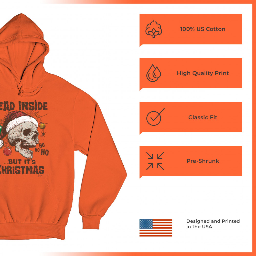 Dark humor Christmas skull with Santa hat and ornaments. Perfect for sarcastic, gothic, and edgy holiday fans who like festive irony.