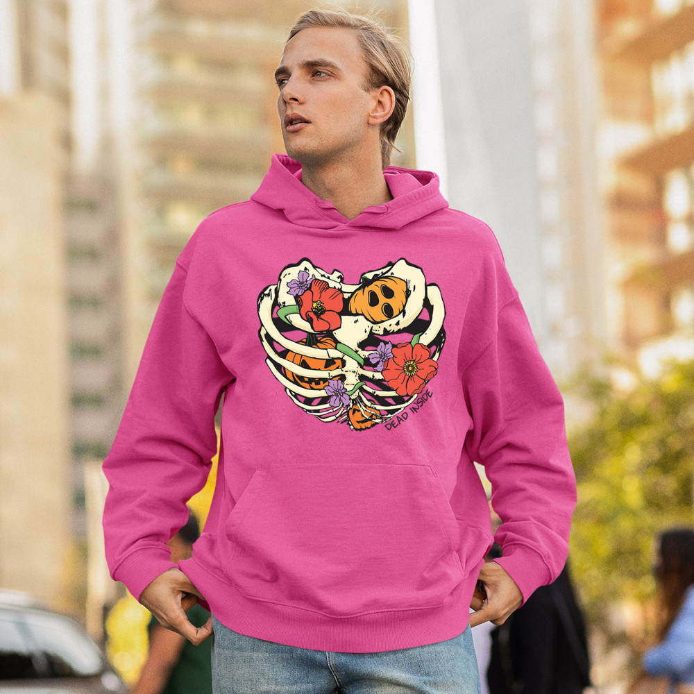 DEAD INSIDE sweatshirt halloween rib cage trick or treat spooky cute hoodie pink
