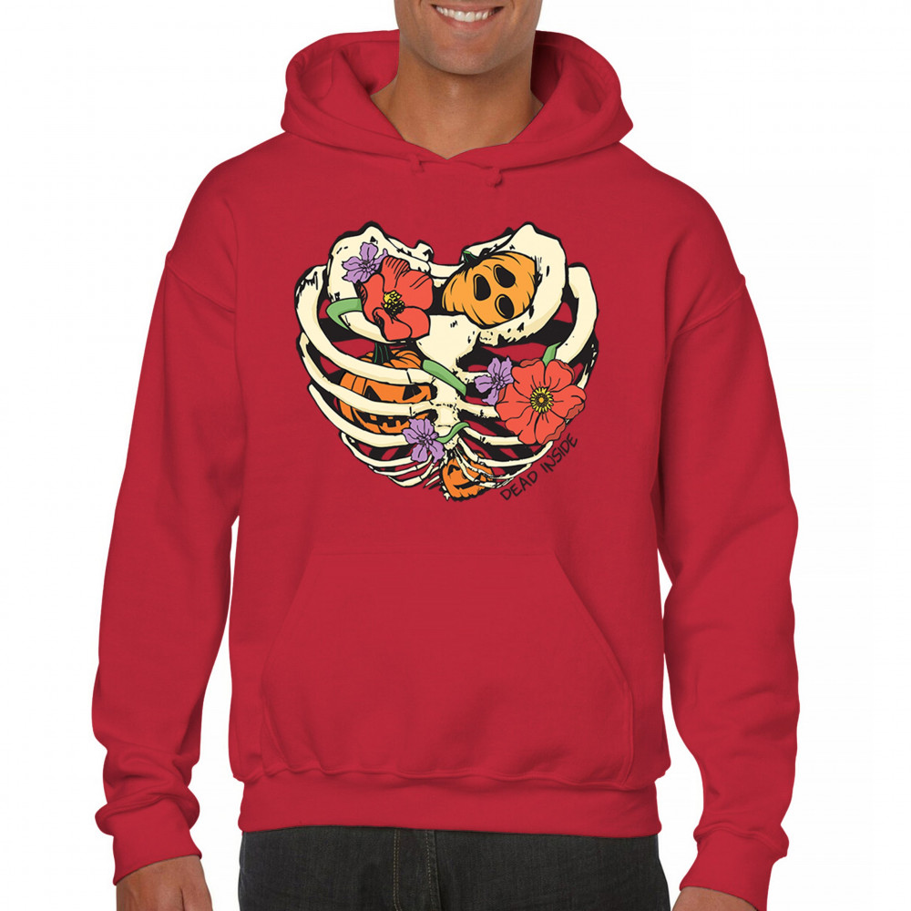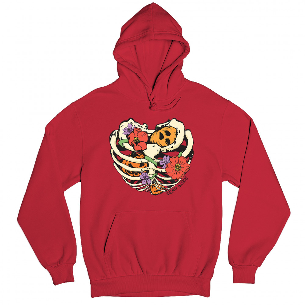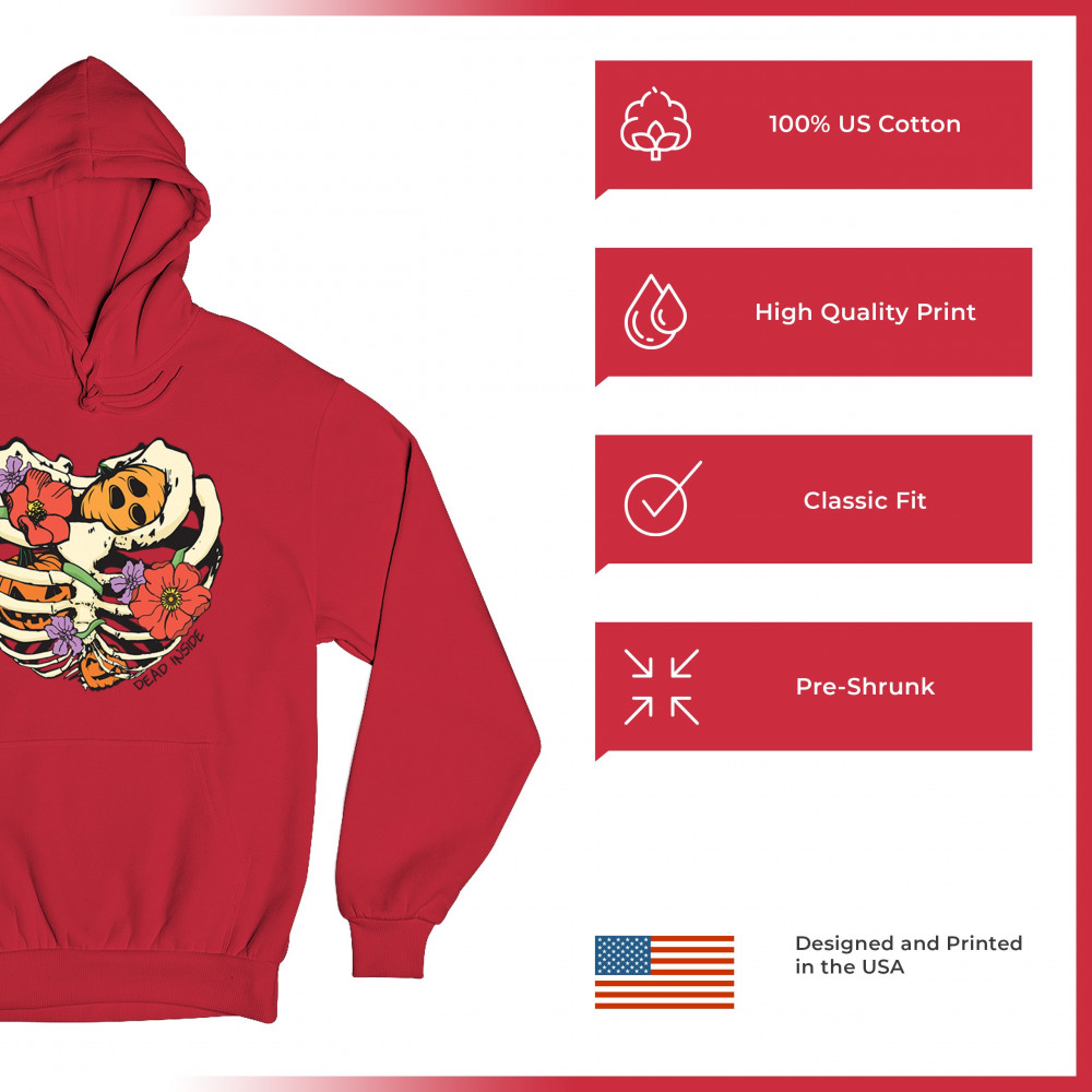 Celebrate Halloween with a quirky and cute design featuring a skeleton ribcage filled with pumpkins and flowers. Perfect for spooky season lovers!