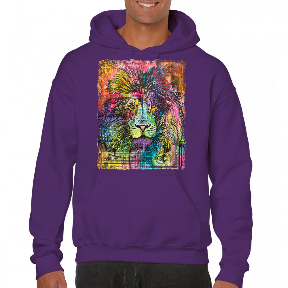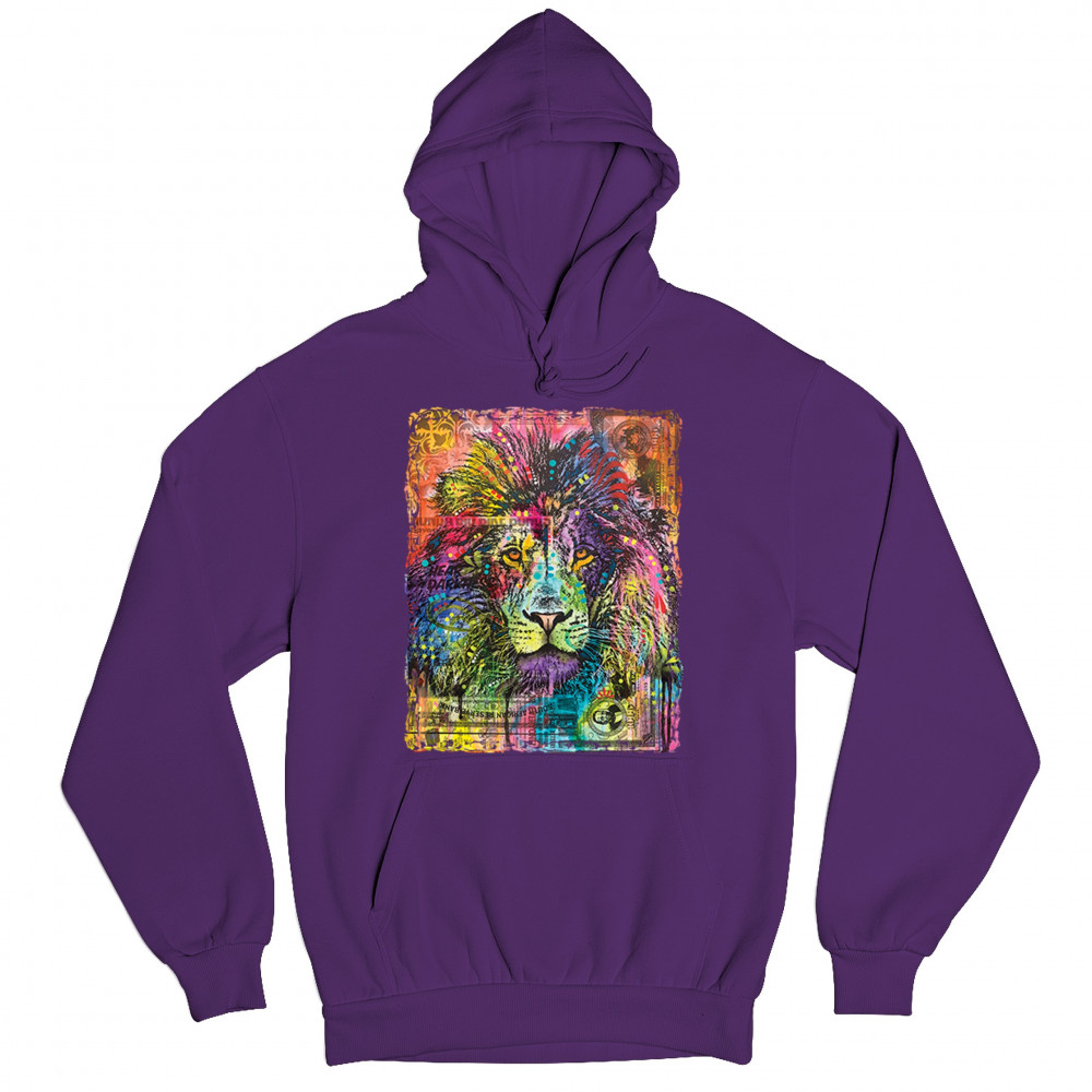 DEAN RUSSO COLORFUL LION HEAD sweatshirt wild life king roar big cat hoodie purple