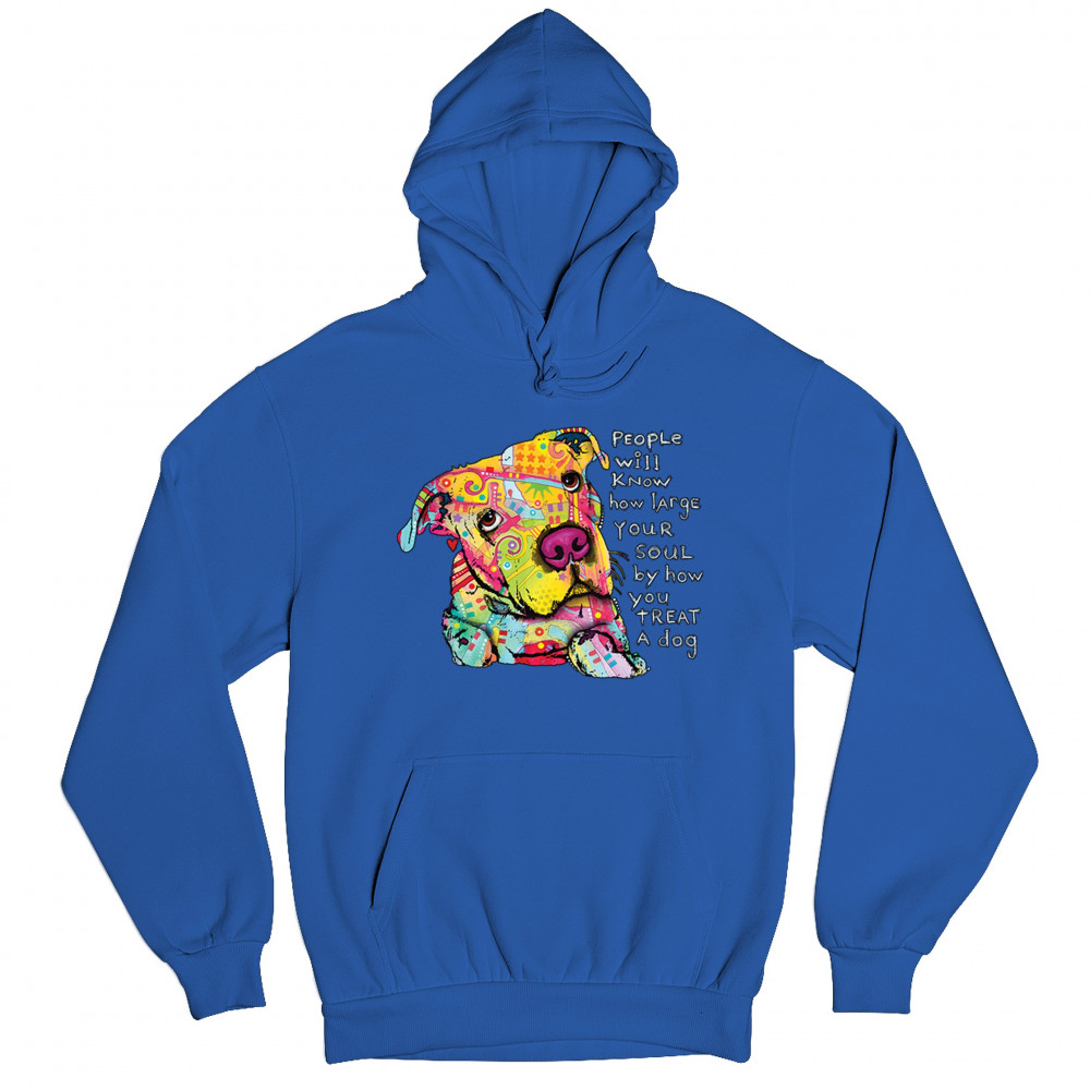 DEAN RUSSO COLORFUL NEON DOG sweatshirt how large your soul is pet hoodie royal blue